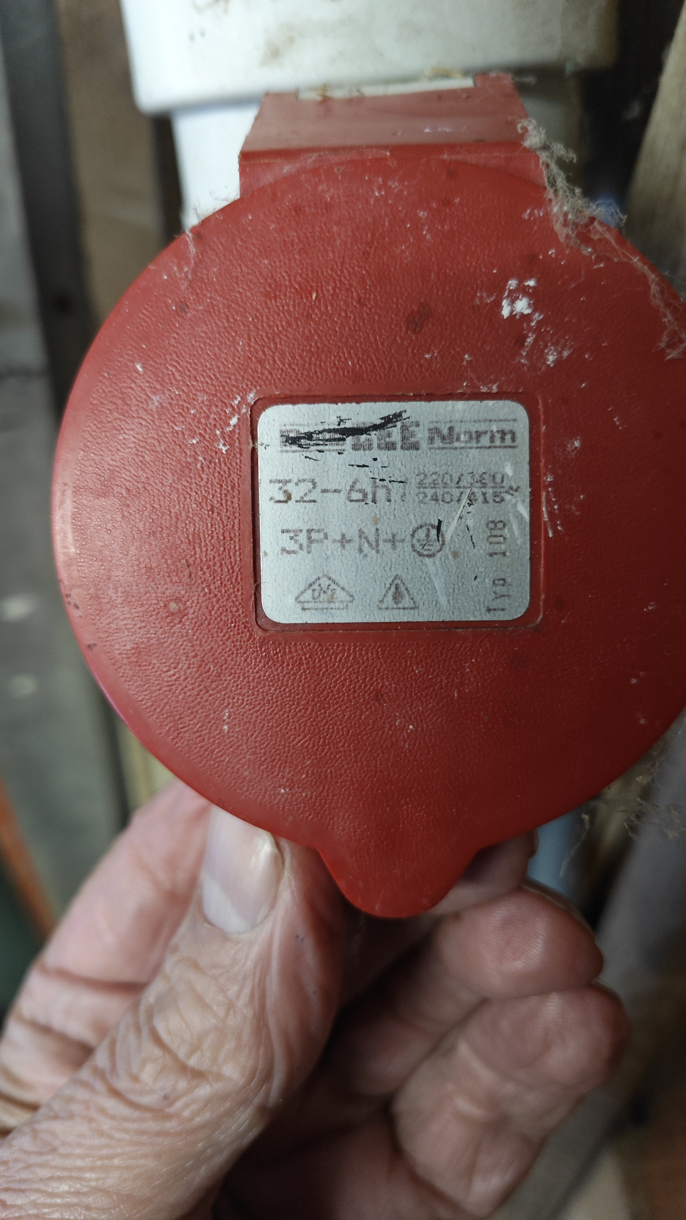 Die Frage wäre ob du eine CEE 16 oder eine CEE 32 hast (das ist die Bezeichnung der roten Dosen). In so einer Dose finden sich die 5 "dicken" Anschlüsse vom Typ2 wieder.