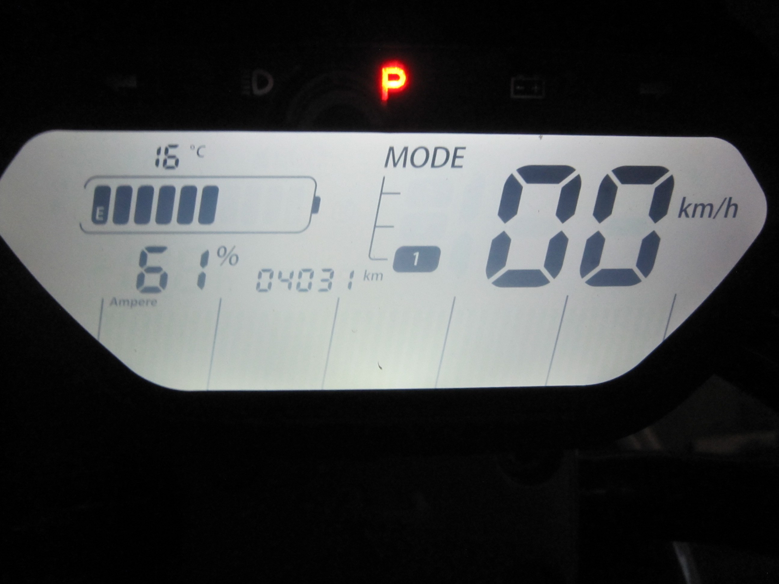 Ab einer Geschwindigkeit von über 52 km/h laut Tacho sollte die Rekuperation einsetzen und somit den Roller abbremsen.