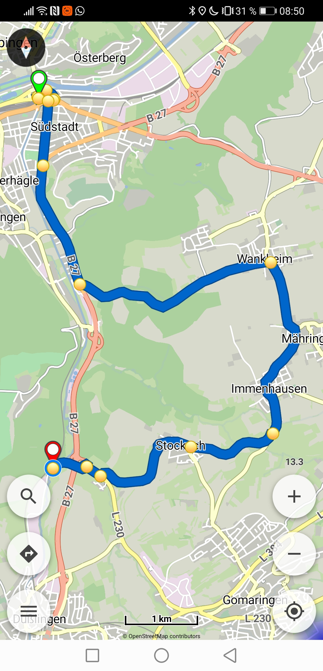 Zum meinem Problem: Auch wenn ich alles wegließ, ausser nebenstraßen und unbefestigte Wege: es fand den kurzen Weg in die STEINIG nicht, nein, es routete sogar wieder auf die B27, obwohl ich dies ja ausgeschlossen habe....