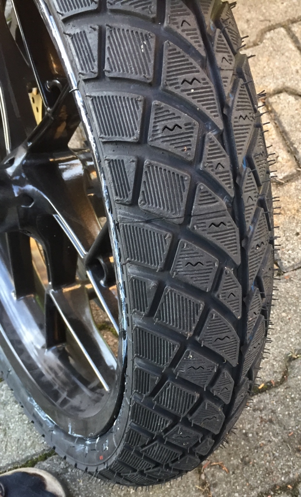 Zusätzlich ist sie jetzt so bereift, dass Herbst, Winter und Frühjahr kommen können. Leider ist der passende Hinterreifen der Metzeler Roadtec 01 Serie nicht lieferbar gewesen, so dass es doch die altertümlichen Heidenau K66 M+S wurden.