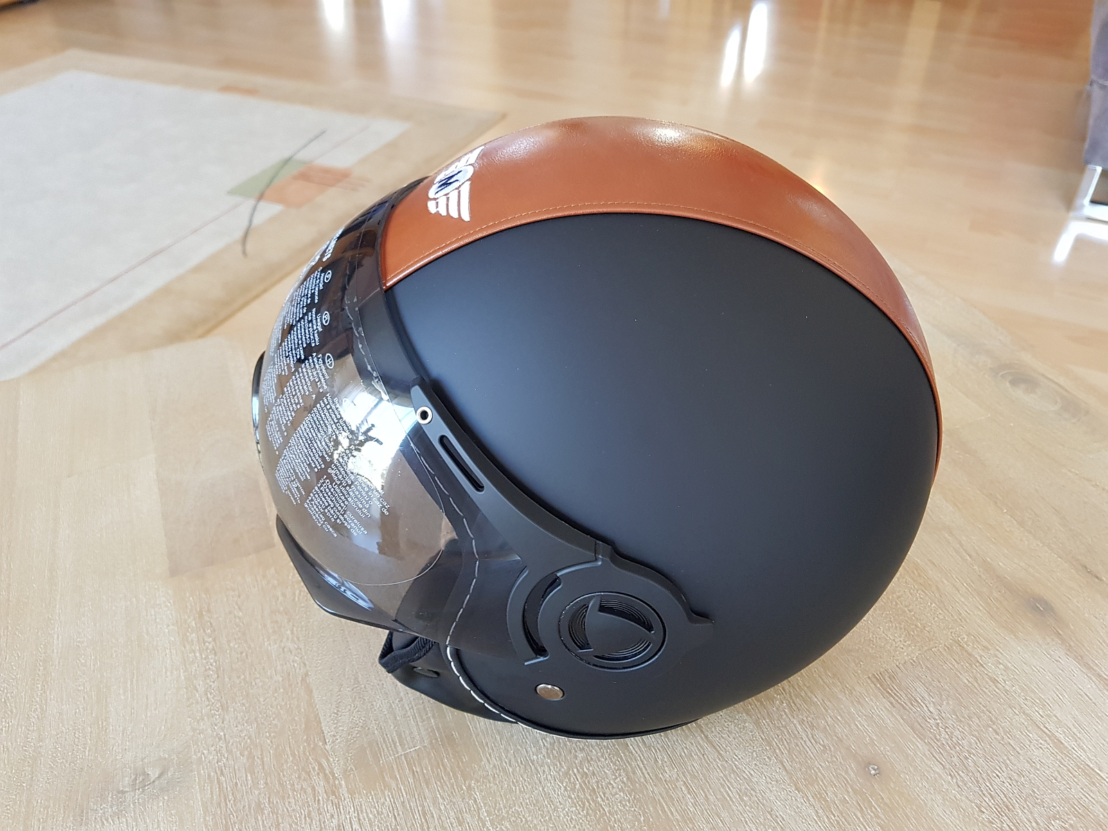 Ich werde - wenn gewünscht - gerne Bilder nachliefern. Hier erst mal ein paar Bilder vom Helm, der mir übrigens ausgezeichnet gefällt - dürfte vom design her prima zum eRetrostar passen und die Verarbeitung ist wirklich gut. Saubere Nähte, alles sitzt und passt prima - für knapp 60 EUR habe ich da (glaube ich) keinen großen Fehler gemacht!