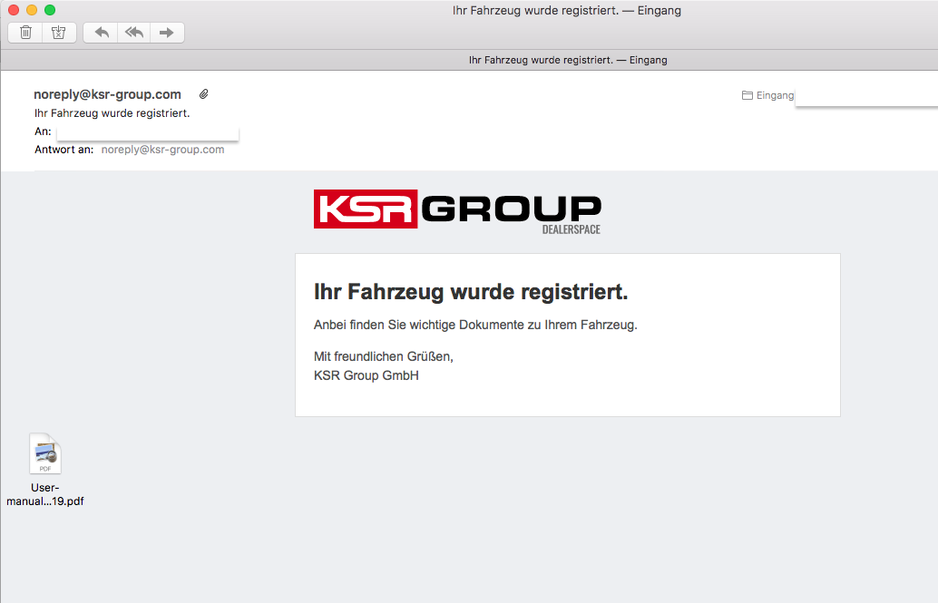 Bist Du sicher, das Dein Roller schon registriert wurde? Ich habe extra 2 Tage nach dem Kauf von KSR eine entsprechede Mail bekommen: