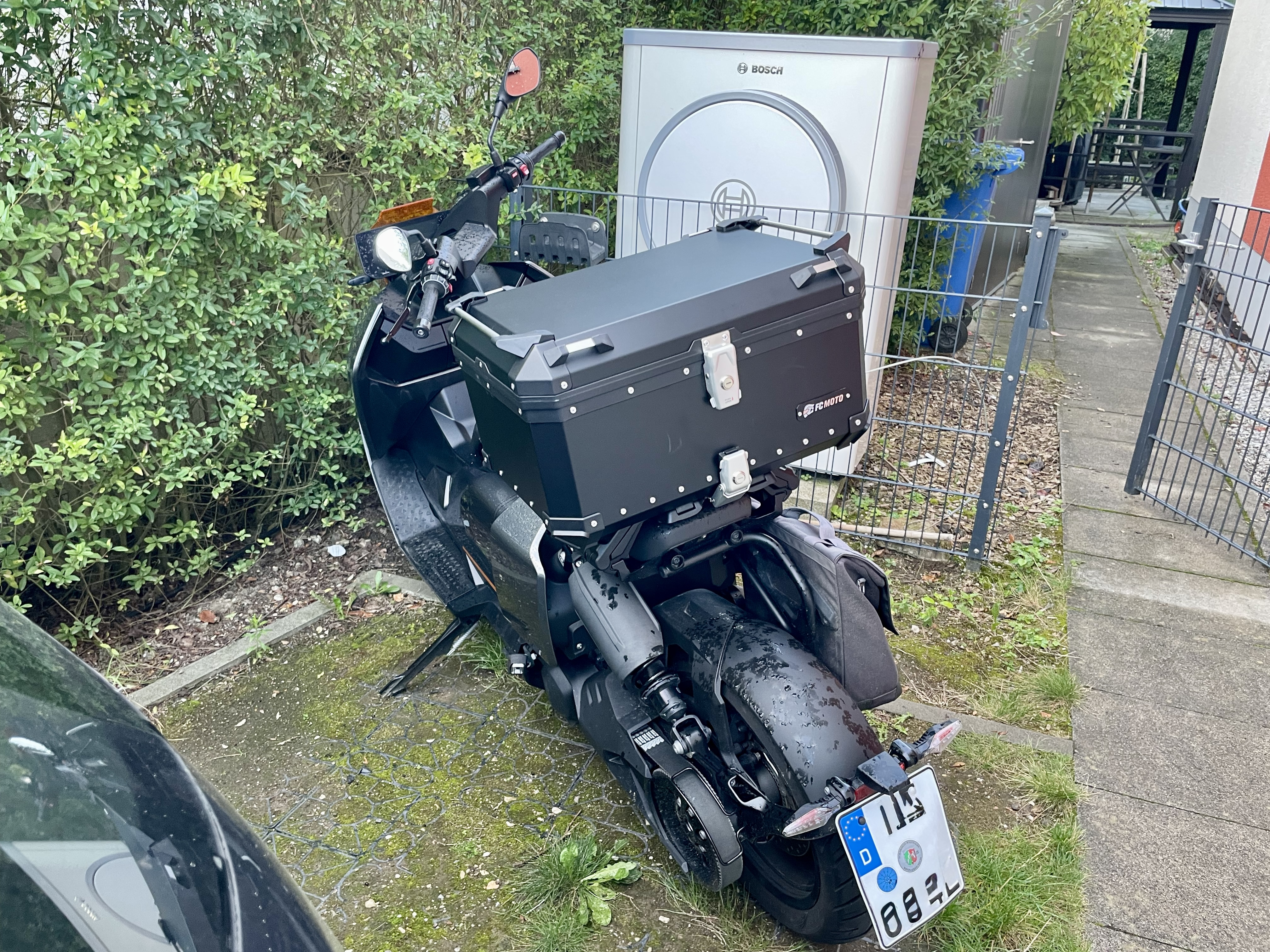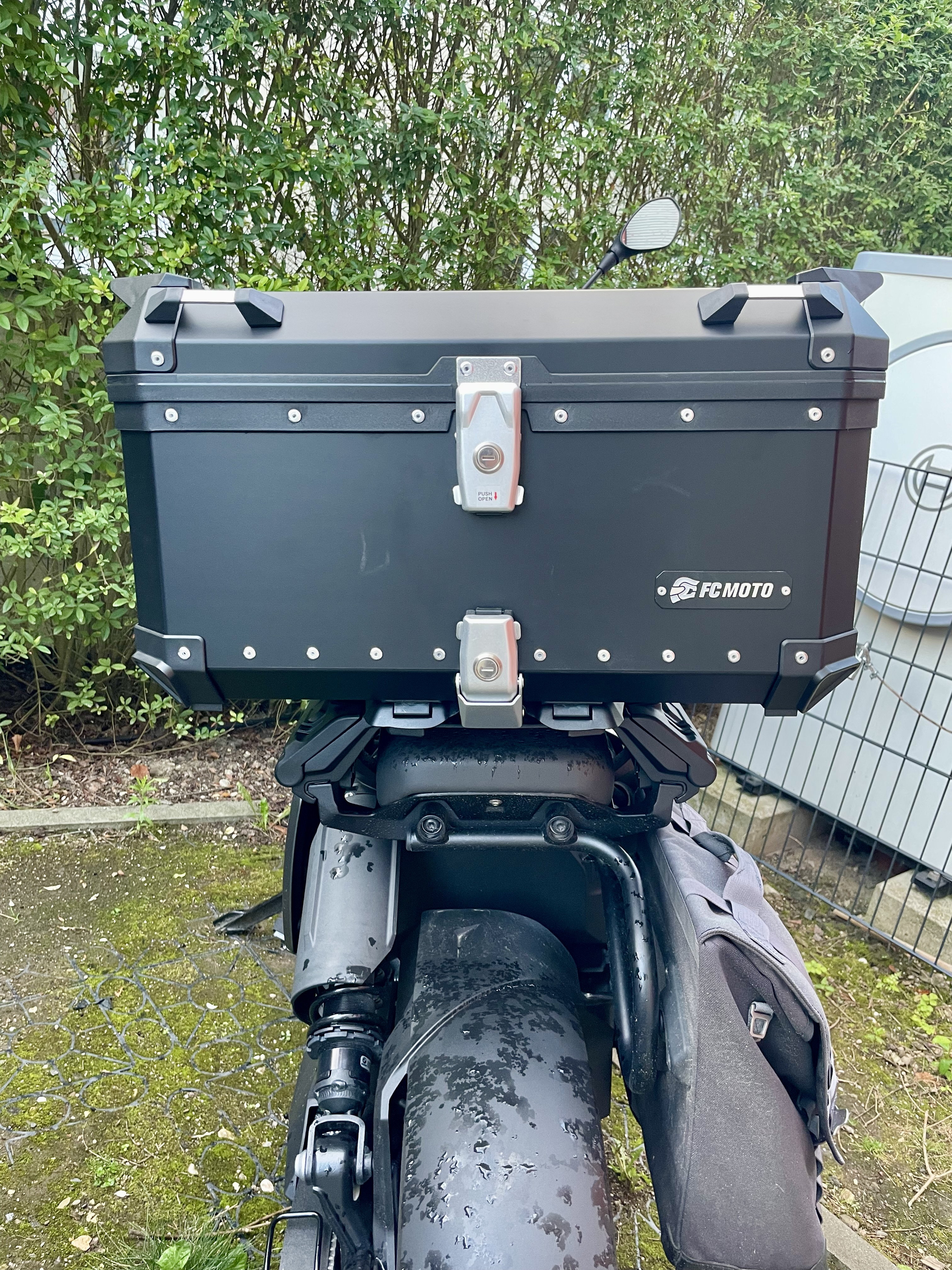 Ich habe mir dazu noch von FC-Moto (baugleiches gibt es von zig anderen Anbietern zu einem sehr ähnlichen Preis) ein großes Topcase (65l) geholt. Für mich passt es, weil ich nur so die - ich mag keine Topcase von der Optik her - Transportkiste draufhabe, wenn ich sie wirklich brauchen. Gleichzeitig sind so besser Griffmöglichkeiten für den Sozius oder auch die Befestigung für eine Gepäcktasche dauerhaft am CE 04 vorhanden.