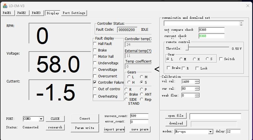 Die Polepairs haben nur Einfluss auf die Impulse pro Umdrehung für den Tacho bzw. die Drehzahlsteuerung. Die Volt kommen direkt vom Akku und werden dadurch nicht beeinflusst. Das merkst Du, wenn Du den Akku komplett auflädst und zeitnah den Votol mit dem PC connectest. Dann solltest Du ungefähr auf die Ladeschlußspannung kommen, die auf dem Ladegerät steht. 58V wären ca. halb voller Akku oder leicht darunter.