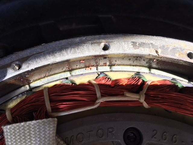 Der vom Elektromobilverein meinte auch das sich evtl. diese Lack/Harzmasse verflüssigt haben könnte, dann könne man allerdings den Motor gar nicht mehr drehen! Das klappt ja bei mir noch ... Warten wir mal ab!