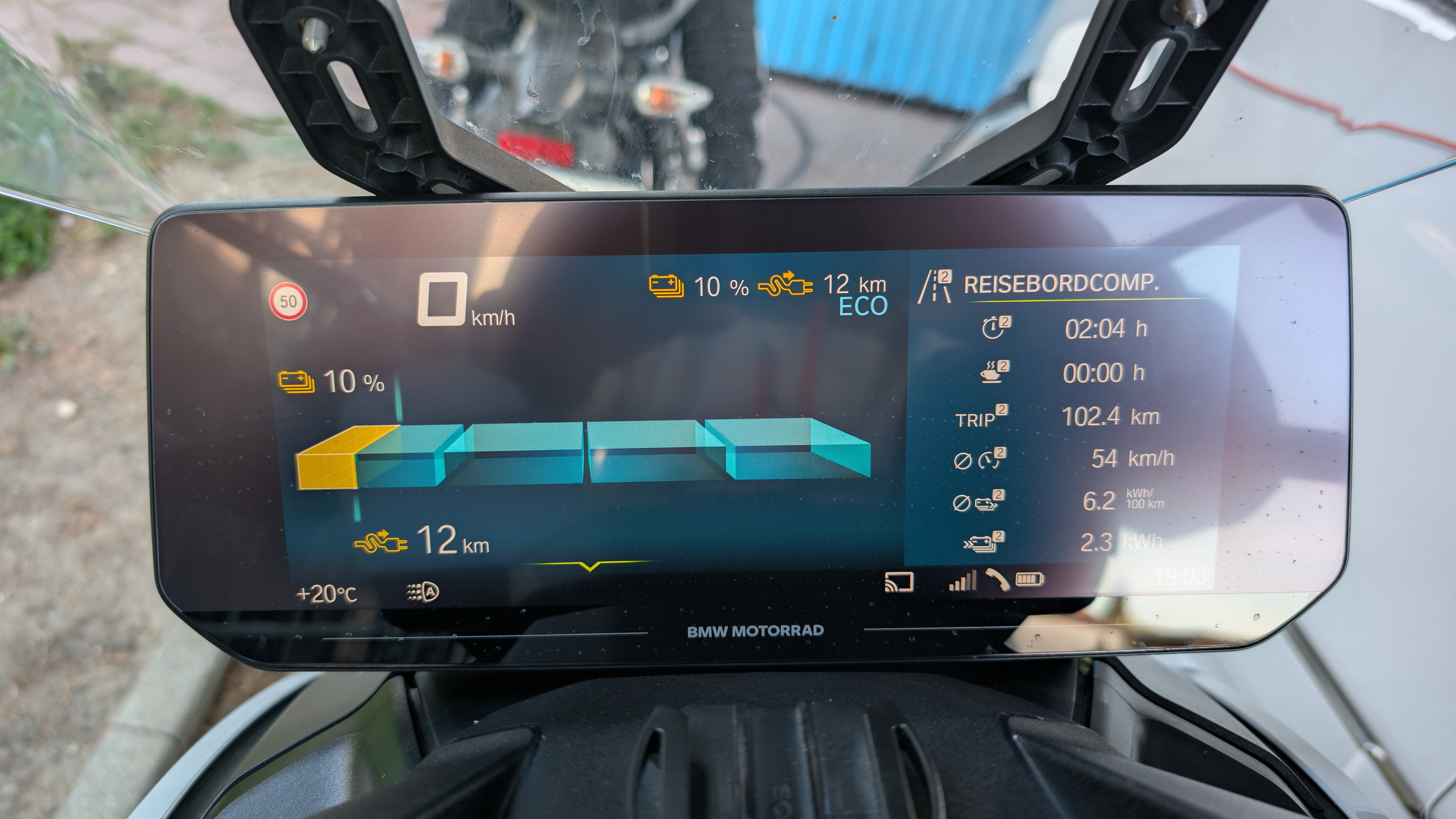 Heute gleiche Runde ohne Zwischenladen und ohne Fahrpausen mit Begleitung durch Sohn (MT125). Verbrauchsstatistik. Geht doch. Bin bei ca 28.000km. 19-21°C.