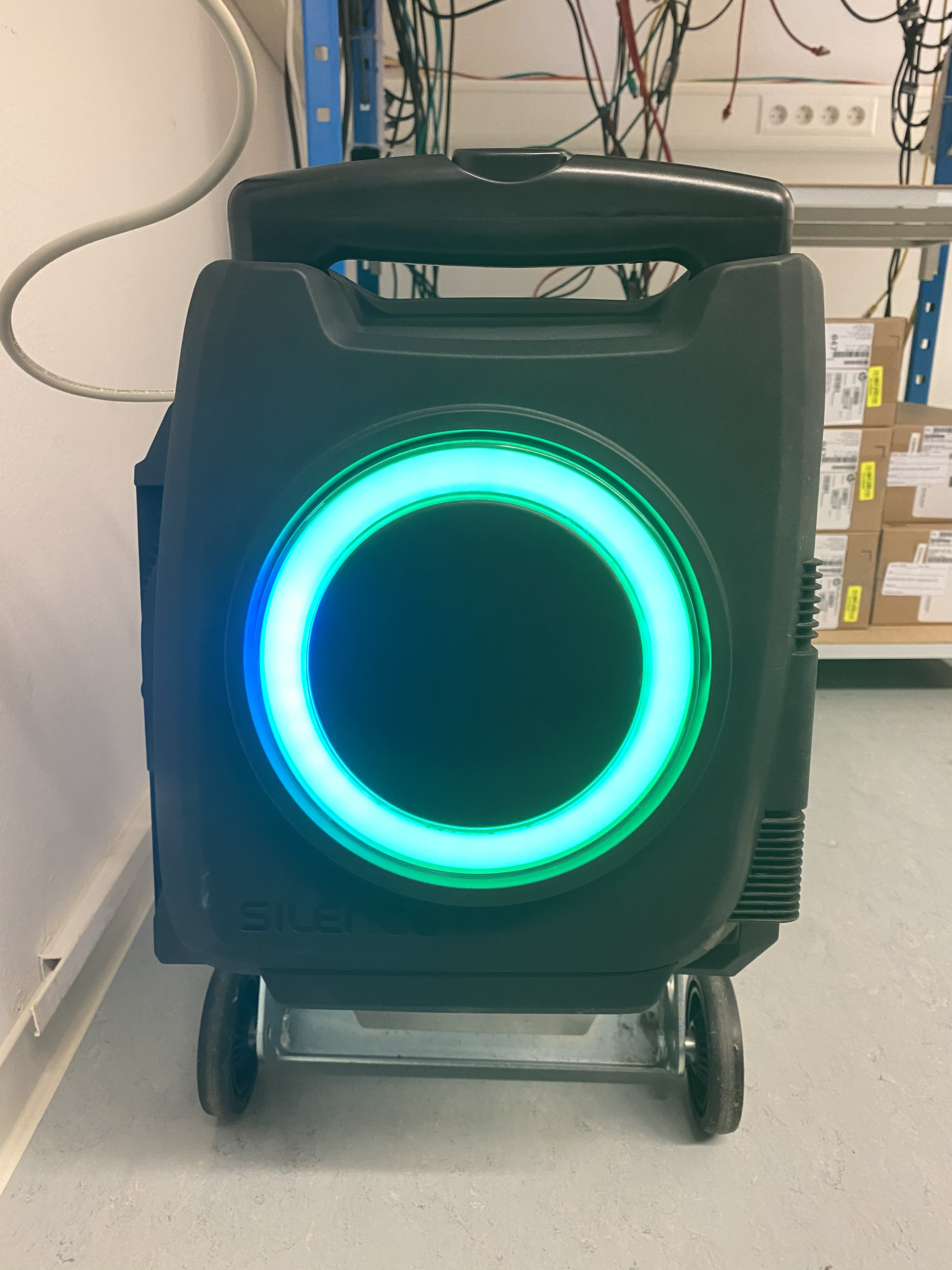 So schaut es aus, wenn der Akku sagt „voll“. Links sieht man den blauen Teil, der sich um den Grünen dreht.