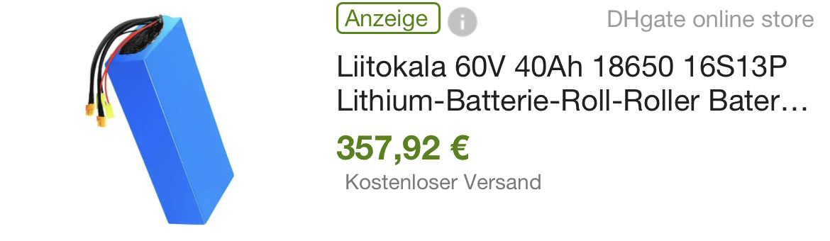 Moin zusammen. Bin neu hier und habe folgendes Problem und hoffe auch, dass ich hier richtig bin: Habe mir aus einem Versicherungsschaden für relativ kleines Geld einen Super Soco TS gekauft (An der rechten Seite etwas angeschmort. Aber nicht so sehr stark) Allerdings ohne Akku und Ladegerät. Für einen Akku wollte ich eigentlich keine 1300€ ausgeben. Nun habe ich mir bei DHgate einen Akku mit 18650 Zellen, 60V 40Ah bestellt Siehe Angang. Allerdings passen hier selbstverständlich die Stecker nicht. Muss ich umbauen. Nun meine Frage: der Stecker am Fahrzeug hat ja 5 Pins. Die beiden Dicken sind klar. Die werden mit 60V betrieben. Die 3 kleinen auch? Ich hab beim lesen hier mitbekommen, dass Tommmi wohl sehr viel Erfahrung hat. Ich kann allerdings keine Nachricht schicken, da ich zu neu bin. Schon mal vielen Dank für Eure Hilfe