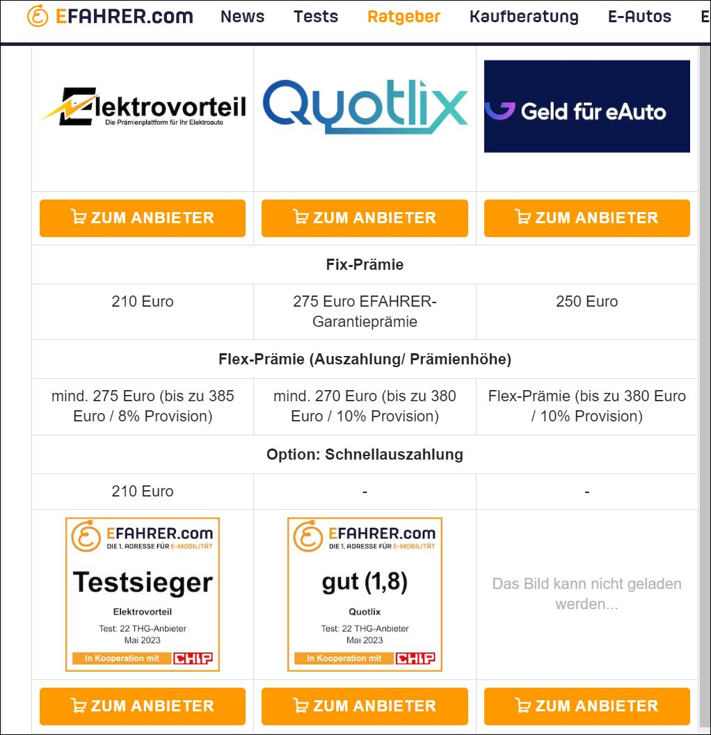 https://elektrovorteil.de/ eingereicht, mit garantierter Prämie für 2022 > 350 EUR, gleich das Häkchen für 2023 gesetzt und im März 353 EUR erhalten. Wenige Tage nach Erhalt eine mail Prämie für 2023 garantiert 325 EUR oder 235 EUR sofort.