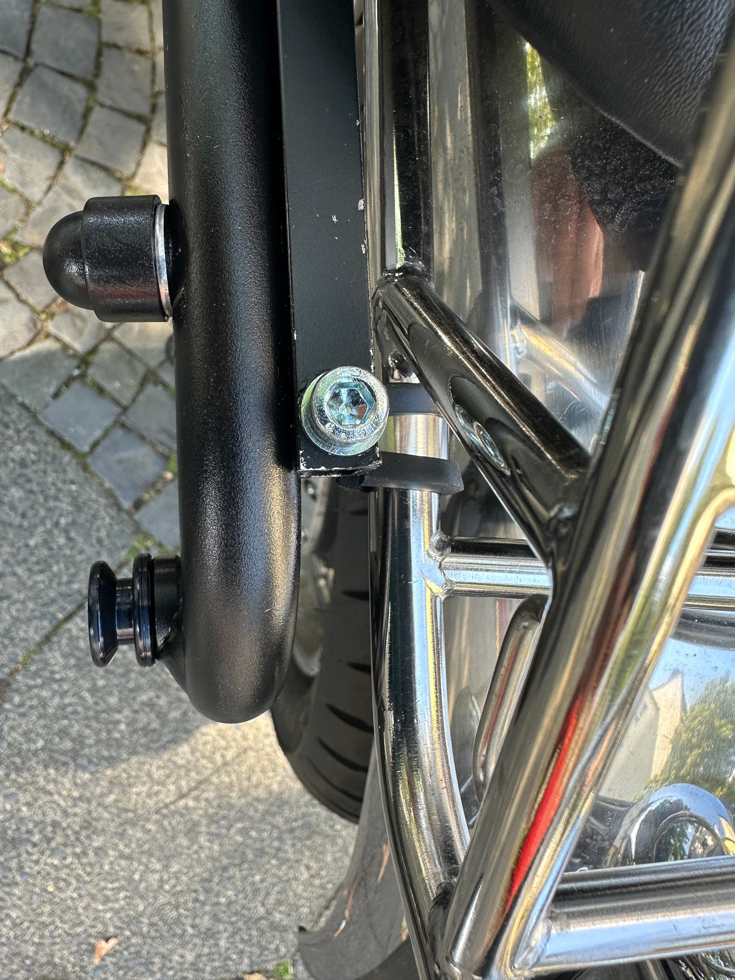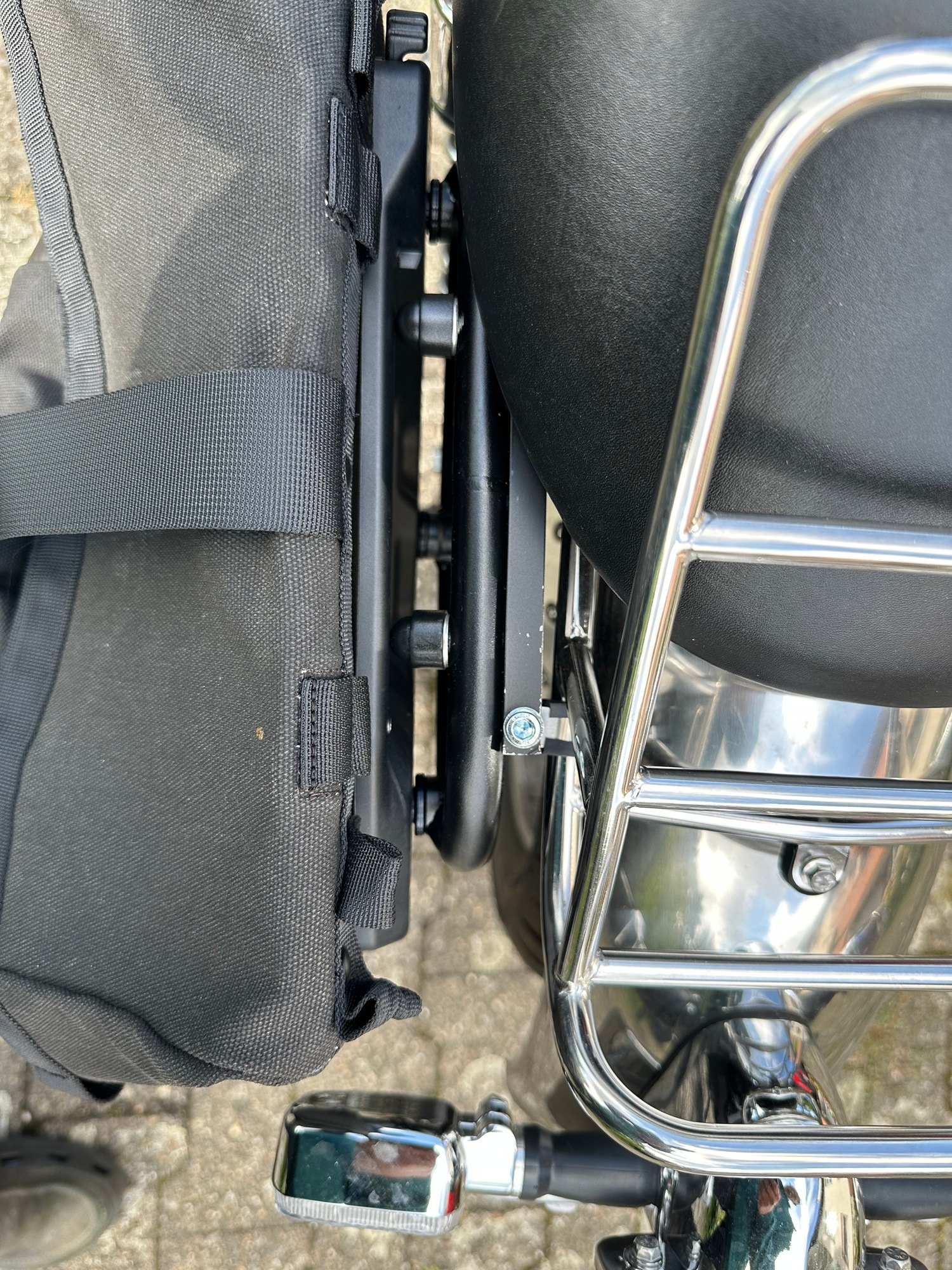 So habe jetzt einen Halter fertiggestellt, der Taschen Halter ist für SW-MOTECH (SLC) Tasche mit so einem Halter z.B. SIDEBAG LEGEND.