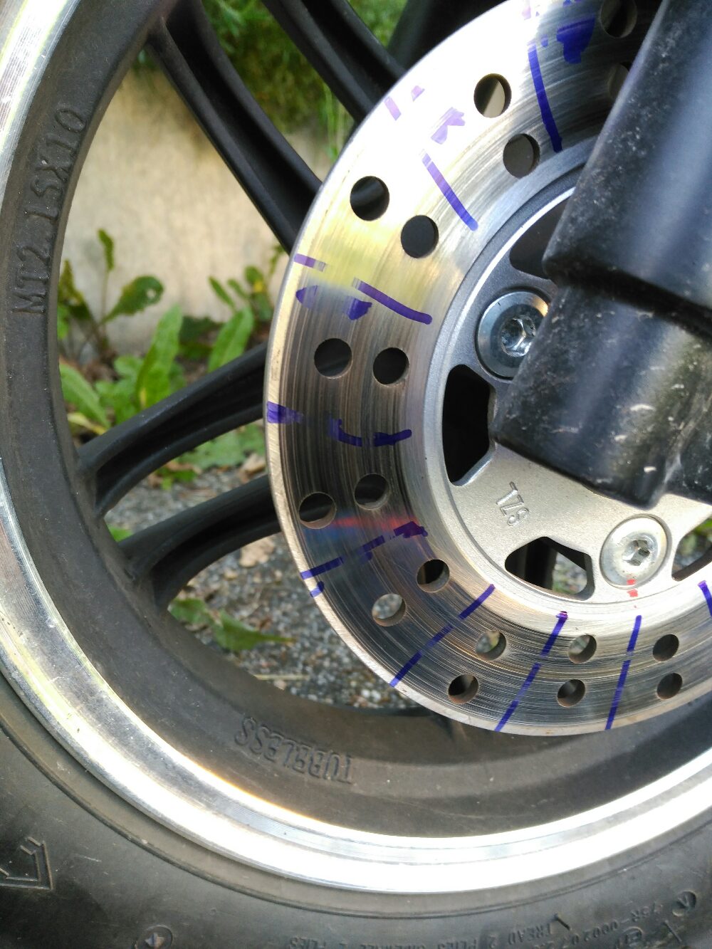Ich habe geschaut woher das Quietschen bei mir kommt und es ist definitiv die Verbindung Belag -Scheibe. Ich hab dann einen Edding geopfert und die Scheibe angemalt und siehe da: die Scheibe an sich läuft nicht richtig rund. Ich hab Bilder anbei...