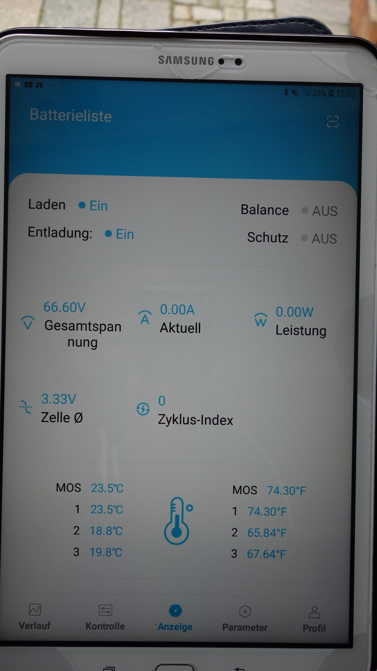 Sollte die Ladeendspannung nicht bei 72 Volt liegen? Ich hoffe mal das sich da, nach mehrmaligem Laden, noch was tut.