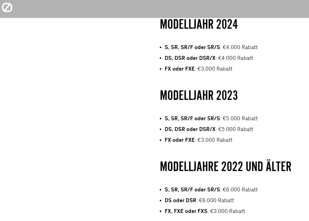 Zero bietet ja im Moment auch 4000,- € Rabatt auf das 2024er S-Modell an. Aber gibt es da überhaupt noch welche bei den Händlern? Bei mobile. de konnte ich keine finden und wo es noch welche gab, waren die 11kW Modelle auch schon rar gesät. Hat da jemand was mitbekommen? Oder weiß jemand, dass noch 11 kW 2024er S-Modelle mit Rabatt vorhanden sind? Oder ist das Angebot doch nur eher theoretischer Natur?
