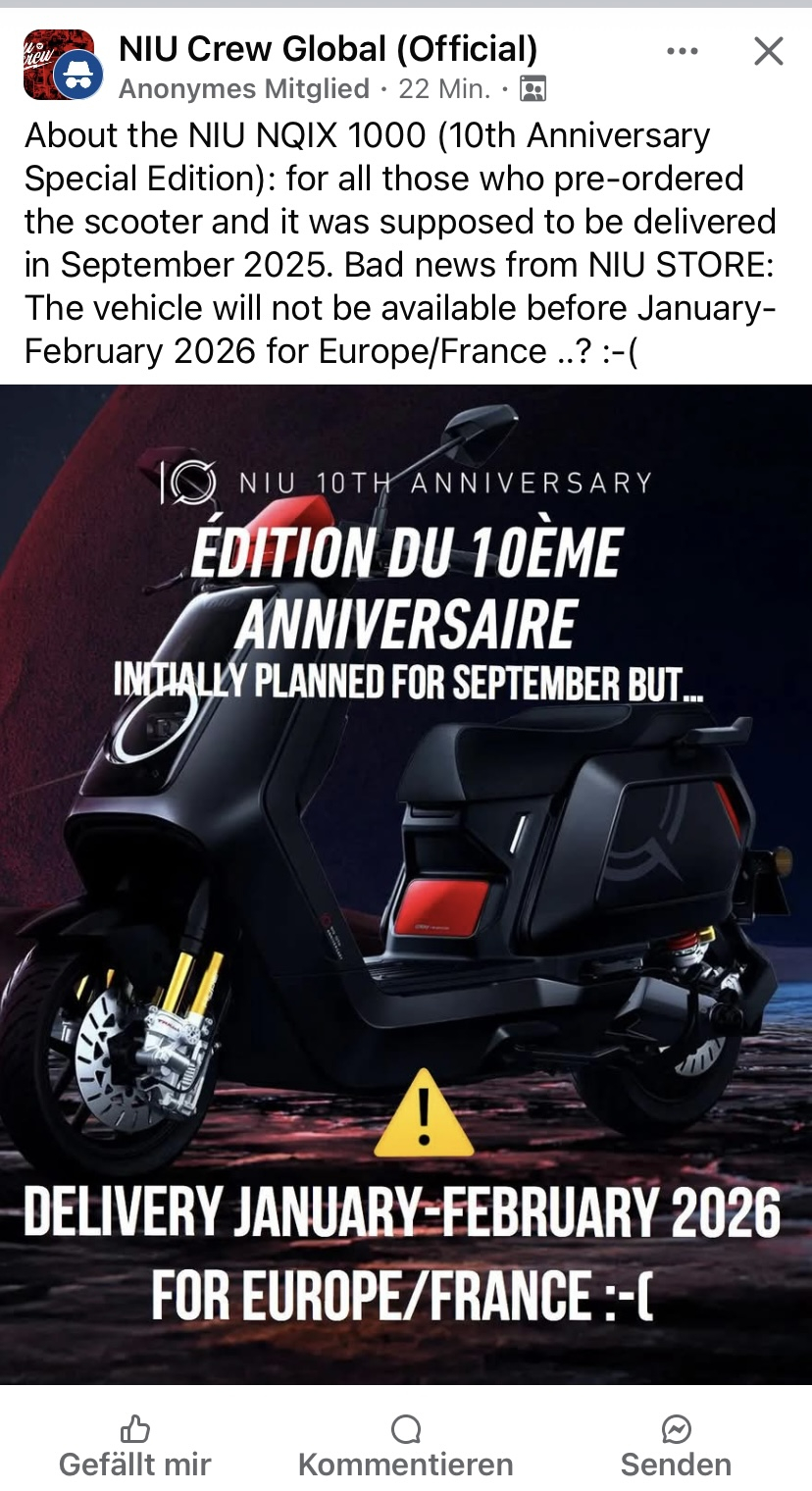 Bad News: Liefertermin NIU-NQiX-1000