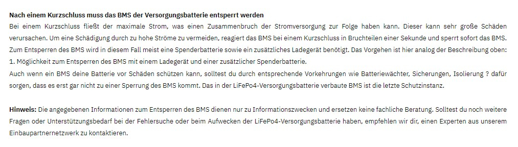 Ein BMS sollte idealerweise einen Kurzschluss abkönnen.