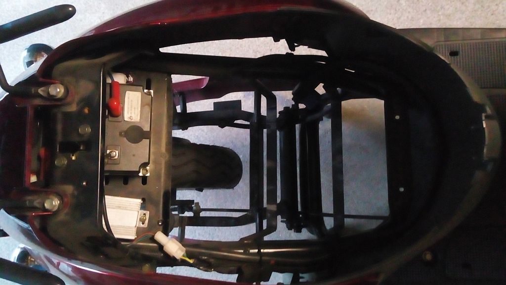Ich habe dann nachgelesen, dass am Controller eine Fehler-LED aufleuchtet bei Fehlern (Helmfach öffnen, Roller einschalten und in die Öffnung wo das Helmfach einrastet durchschauen). Mitzählen wie oft diese LED blinkt und man hat den Fehlercode. Bei mir hat sie 12 mal aufgeleuchtet. Fazit: Fehlercode 12. Hat wohl etwas mit einem Fehler zwischen Gashebel und Controller zu tun.