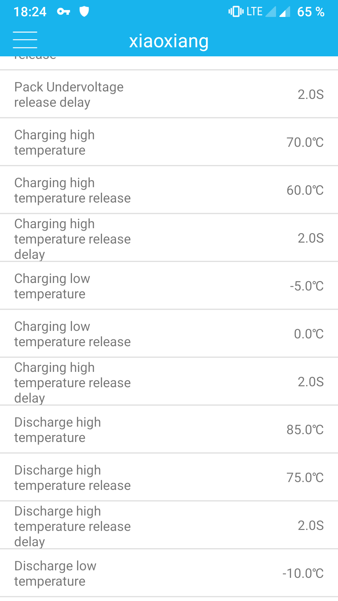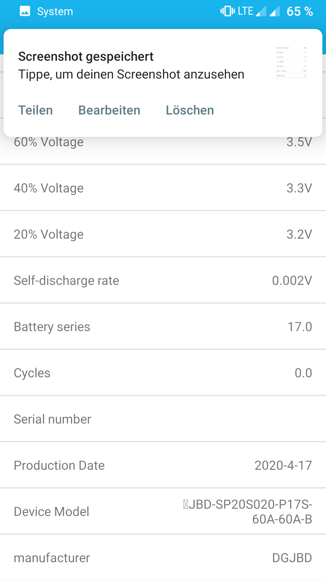 Leider kann ich das BMS nicht parametrisieren mit der App, laut meinem ebay Link oben gibt es aber Screenshots, das es gehen sollte? So kann ich nun nicht laden, weil ich nicht weiss, was an Cutoff Spannungen eingestellt ist (LiFePo oder LiPo).