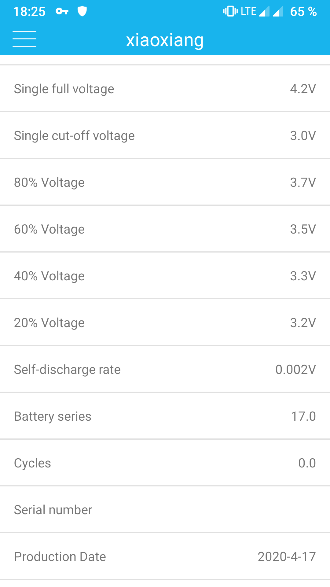 hmpf hat geschrieben: So 14. Jun 2020, 17:03Die Xiaoxiang BMS Android App kann sich mit dem Bluetooth Modul verbinden und ich sehe die aktuelle Spannung (64V) und weiter nuetzliche Infos.