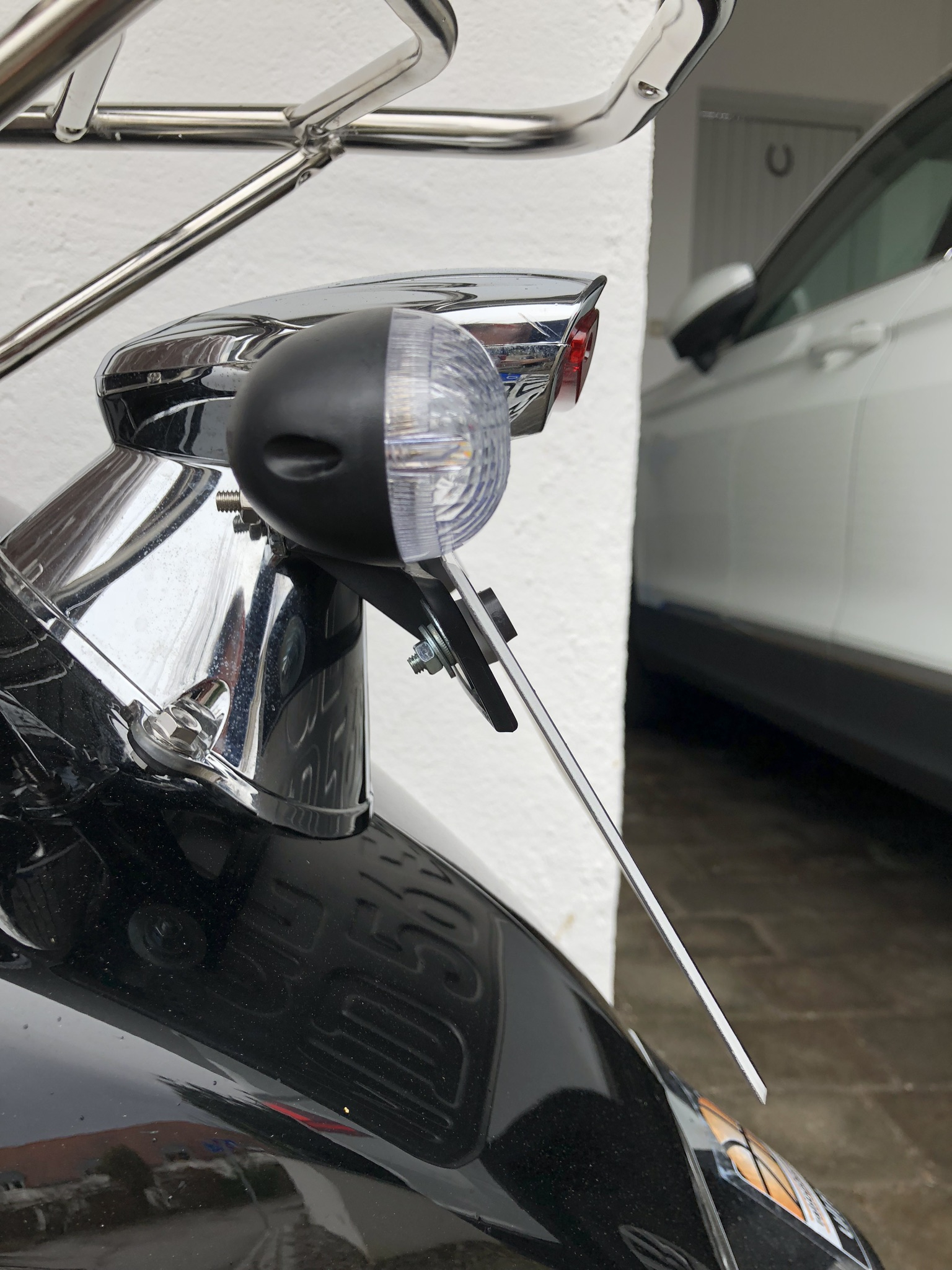 Kleinkraftroller- Nummerschild habe ich mit Nummernschildschrauben M5 und 20mm Unterlagsscheiben an die vorhandene Halterung angebracht.