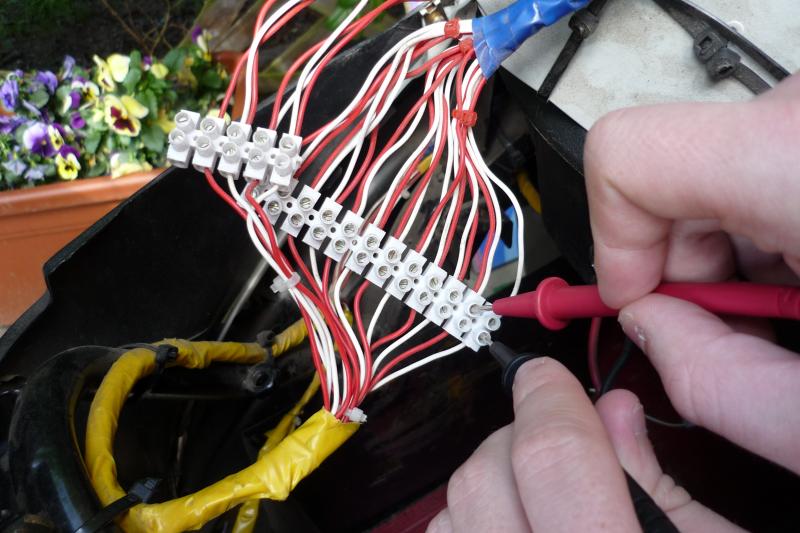 Nun wird alles nochmals durchgemessen, die Zellspannungen müssen auch an den Lüsterklemmen ankommen. In einem Fall habe ich nur 3.24V gemessen - das Kabel hatte einen Bruch, also fix repariert.
