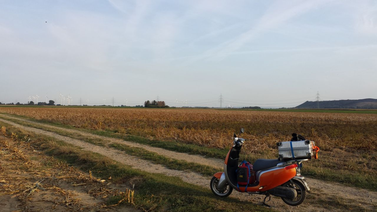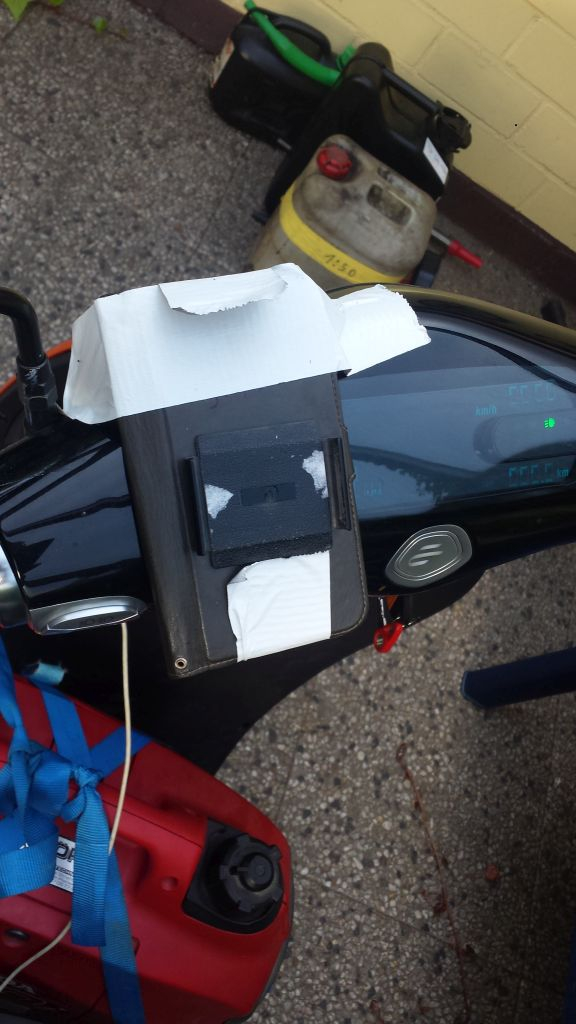 Köfferchen aufgeschnallt, Generator verzurrt, Handy mit Gaffa für die Navigation zurechtgeklebt und los.
