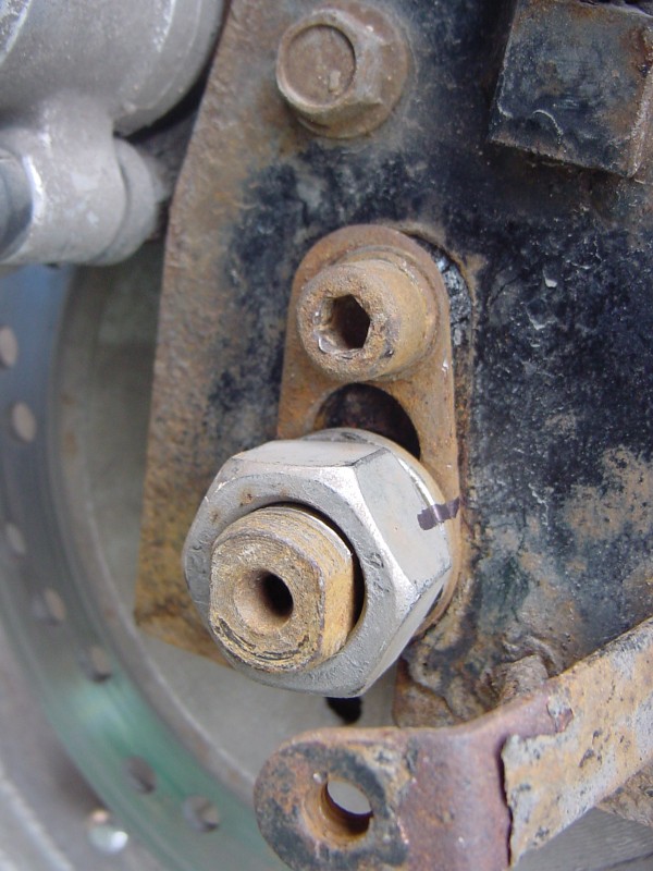 Ich hatte in meinem Betrag erwähnt, dass ich selbst noch nicht dort geschraubt habe. Allerdings - sieht man ja an dem unterbrochenen Farb"siegel" an Mutter & Gewinde- wurde der Motor schon ein Mal abgenommen, nämlich zwecks Montage der Winterbereifung. Ob ich da wohl mal beim Händler wegen möglicher vergessener?? Federscheibe fragen sollte?