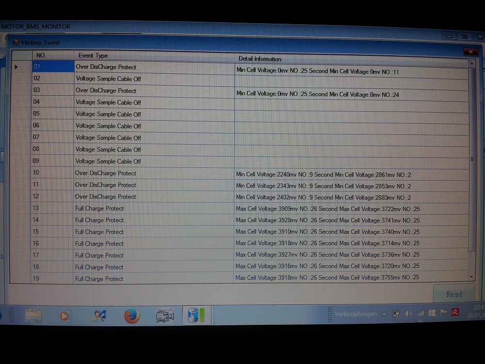 Wobei, das Photo scheint die History Seite zu sein, min und max-Spannungen, die mit Verlaub für LiFePO4 zum Teil extrem ungesund aussehen