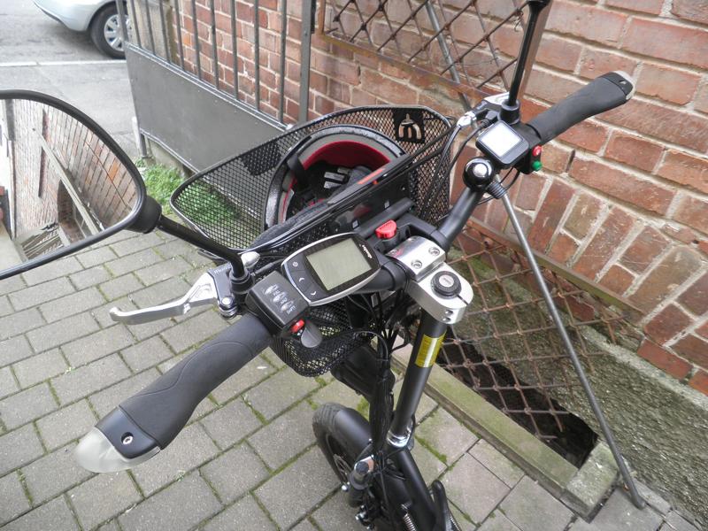 Ist der Korb zu weit oben, dann kippt der Escooter.