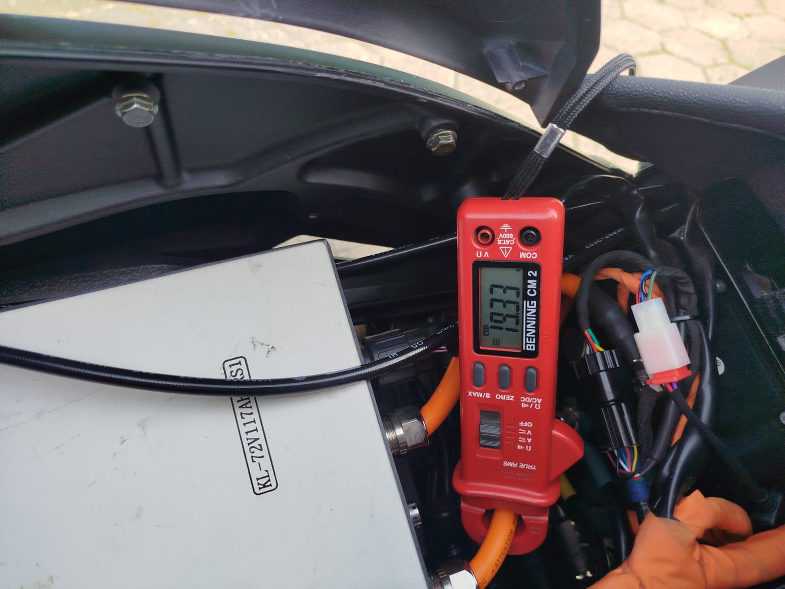 Beim Laden mal die Messzange mit einer anderen von einem Namenhaften Hersteller abgeglichen. Meine Mastech hat 2% Messabweichung, die von Benning hat wahrscheinlich weniger. Das ist mir beim Leerfahren noch aufgefallen, ich habe in der App keinen Einfluss auf die Max Line Current. Die sinkt mit dem Akkustand, bei 1% Akku hatte ich nur noch 54A Line Current. Wenn der Akku Voll ist, steht da bestimmt auch eine größere Zahl als 235A.