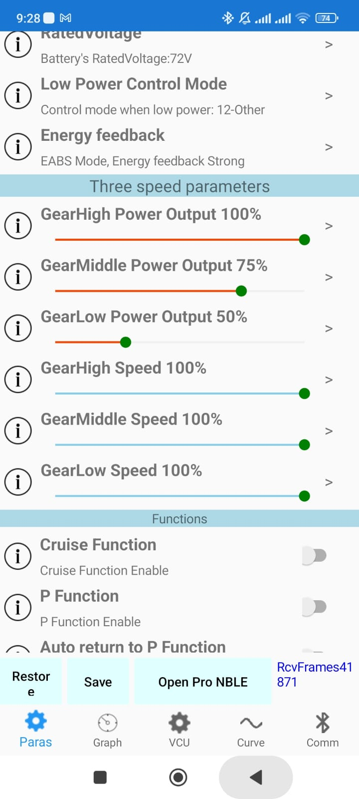 Das automatische senken der Batteriestromwertes kann ja auch durch die Kommunikation mit dem BMS zustande kommen. Bei dir steht unter Protect "Battsignal one lin command" drin, bei mir steht da lithium drin. Ich vermute das BMS kommuniziert über one lin mit dem Controller.