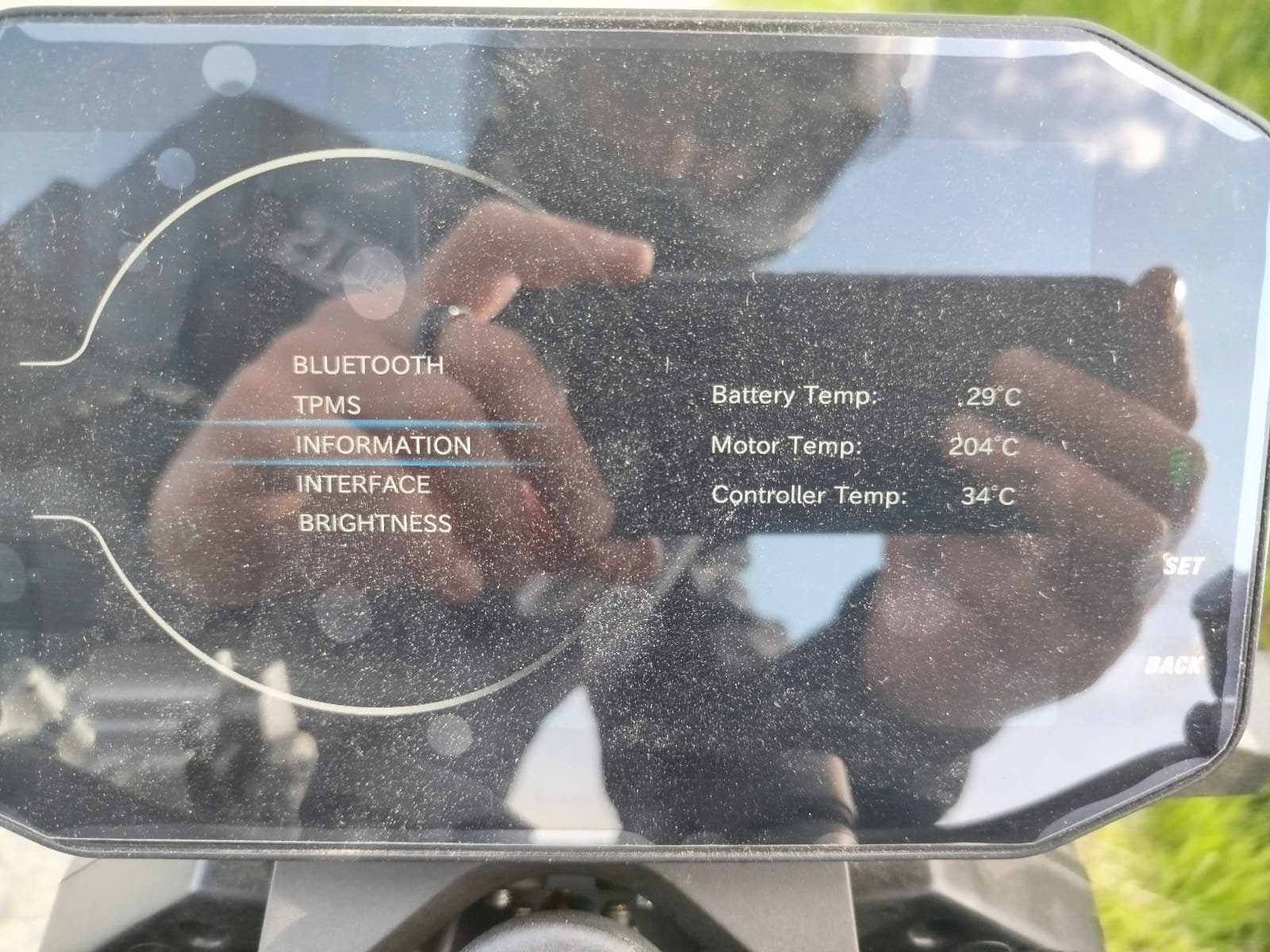 Das zeigte mir die Information an. Aber der Motor war gerade mal 46 grad, die Anzeige springt hin und her. Zeigt auch mal minus Werte an. In der App steht Motor Temperatur bei 0 Grad.