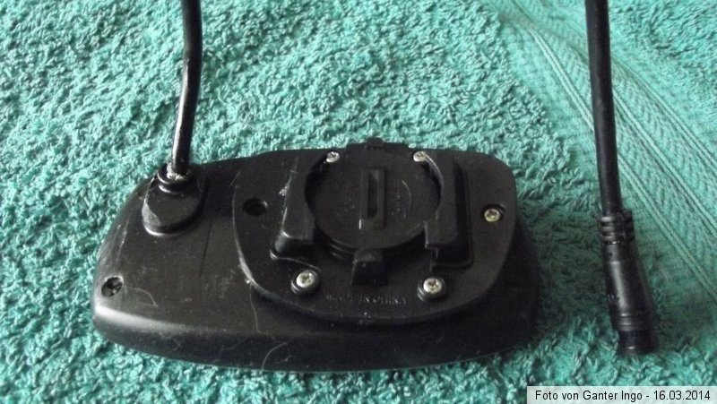 Von vorne sehen die MF-Display zwar gleich aus, aber hinten gibt es Unterschiede. Bei mir ist mittig die Befestigungslasche, die man in die Halterung am Lenker einschiebt. Mittig in diesem Verbindungsstück ist eine Stützbatterie untergebracht, um Datenverlust zu vermeiden. Eine Taste ist bei meinem Teil nicht vorhanden. Drücke Sie doch einfach mal, Harry. Die Taste, nicht Deine Frau. Das machst Du doch sicherlich sowieso jeden Tag. :D
