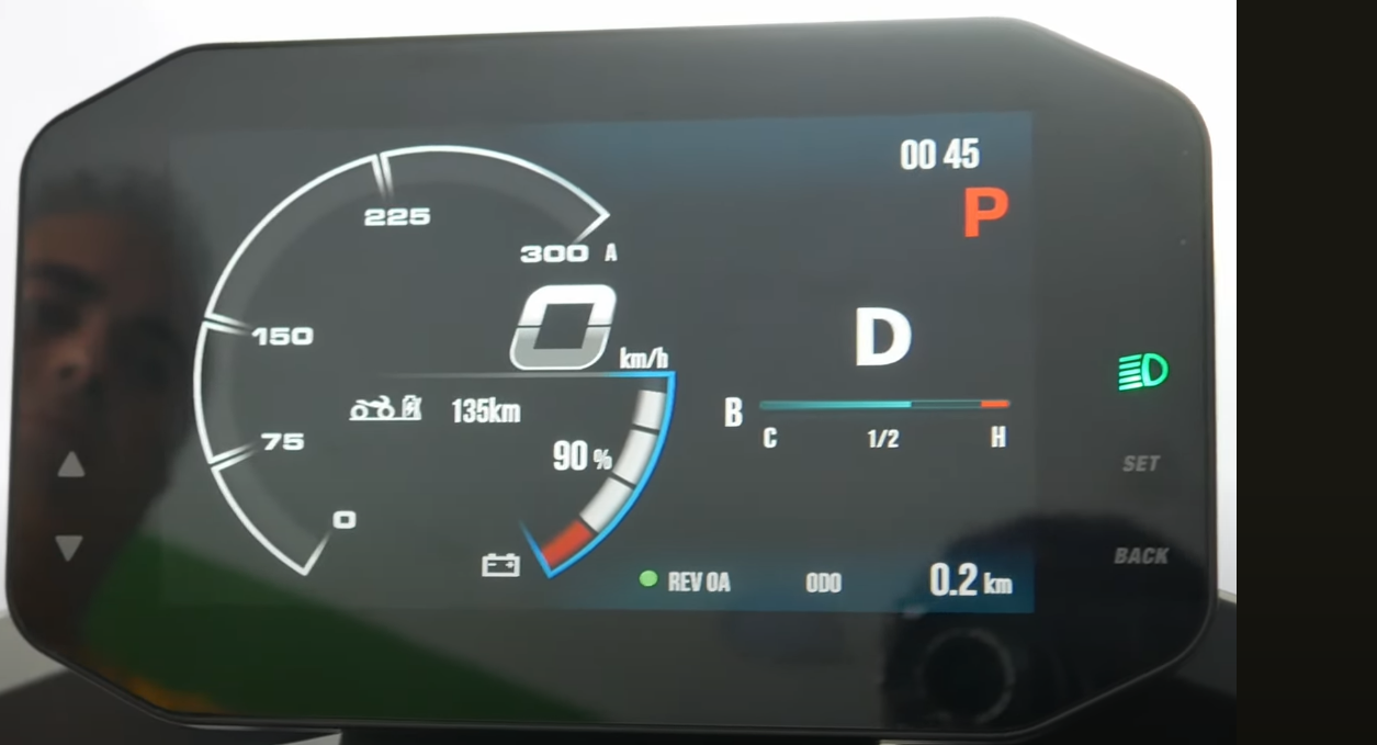 . Beim Batteriestrom zeigt das Messgerät 242A (Controller App zeigt 235A), also schon etwas genauer als meine alte Zange. Der maximale Phasenstrom beträgt 489A bei einer Akkuladung von 70% und zwar im unteren Drehzahlbereich. Also da ist noch reichlich Luft nach oben, leider wird der Batteriestrom begrenzt und lässt sich nicht ändern.