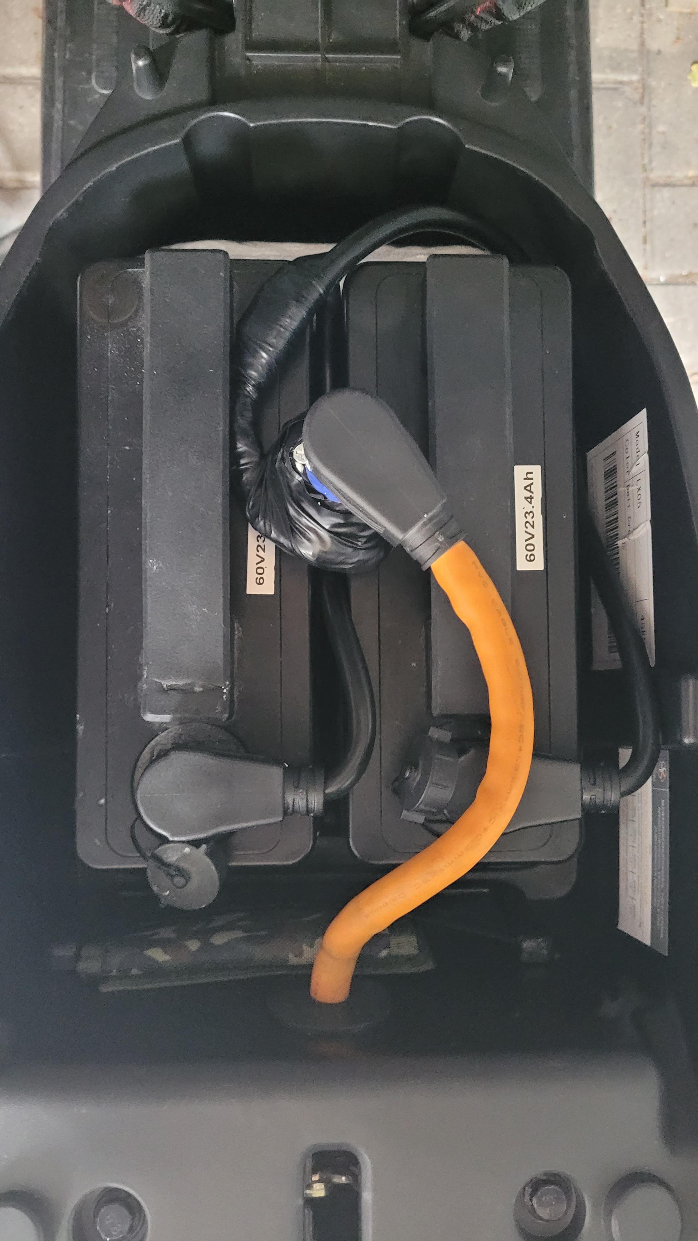 Man an natürlich auch einfach ein zweiten männlichen Stecker am original Kabel anlöten, aber ich wollte am roller nix verändern und kann den Adapter mit in die Wohnung nehmen und mit einem Ladegerät beide Akkus gleichzeitig laden.