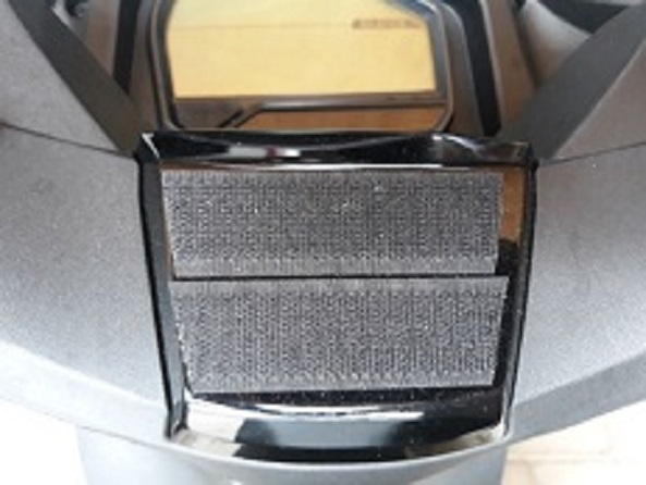 Mit Klettband, zum selber kleben, einen HDY-Halter für das Lenkerzierelement.