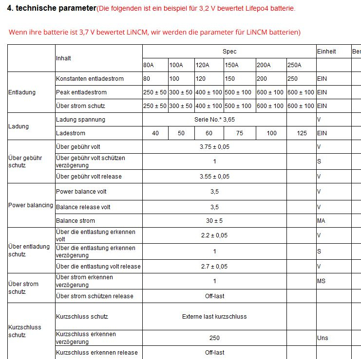 Den Daten nach sollte es das tun.Peter51 hat geschrieben: Fr 29. Mai 2020, 08:13 Für dein BMS sind wohl max. 0,035A Ausggleichstrom angegeben. Da wird auch kein dünnes Kabel warm. Sorge machte ich mir eher, ob das Deligreen / Daly electronic BMS bei einer Zellspannung größer 3,75...3,90V auch abschaltet.