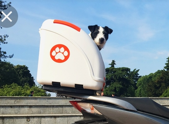 Hundemitnahne ist auch gelöst. Pet on Wheel Box für diejenigen die evtl auch einen kleinen Hund haben, um ihn zu transportieren, der Hund auf dem Bild ist nicht meiner, ist das Produktbild. Das Case kann nach hinten und vorne ausgerichtet befestigt werden. Zudem abschließbar und das Kopfloch kann ebenso zu gemacht und von innen verriegelt werden, so dass man den Koffer als normales Topcase benutzen kann. Lüftungslöcher sollen auch vorhanden sein. Also benötige ich dann kein extra Topcase.
