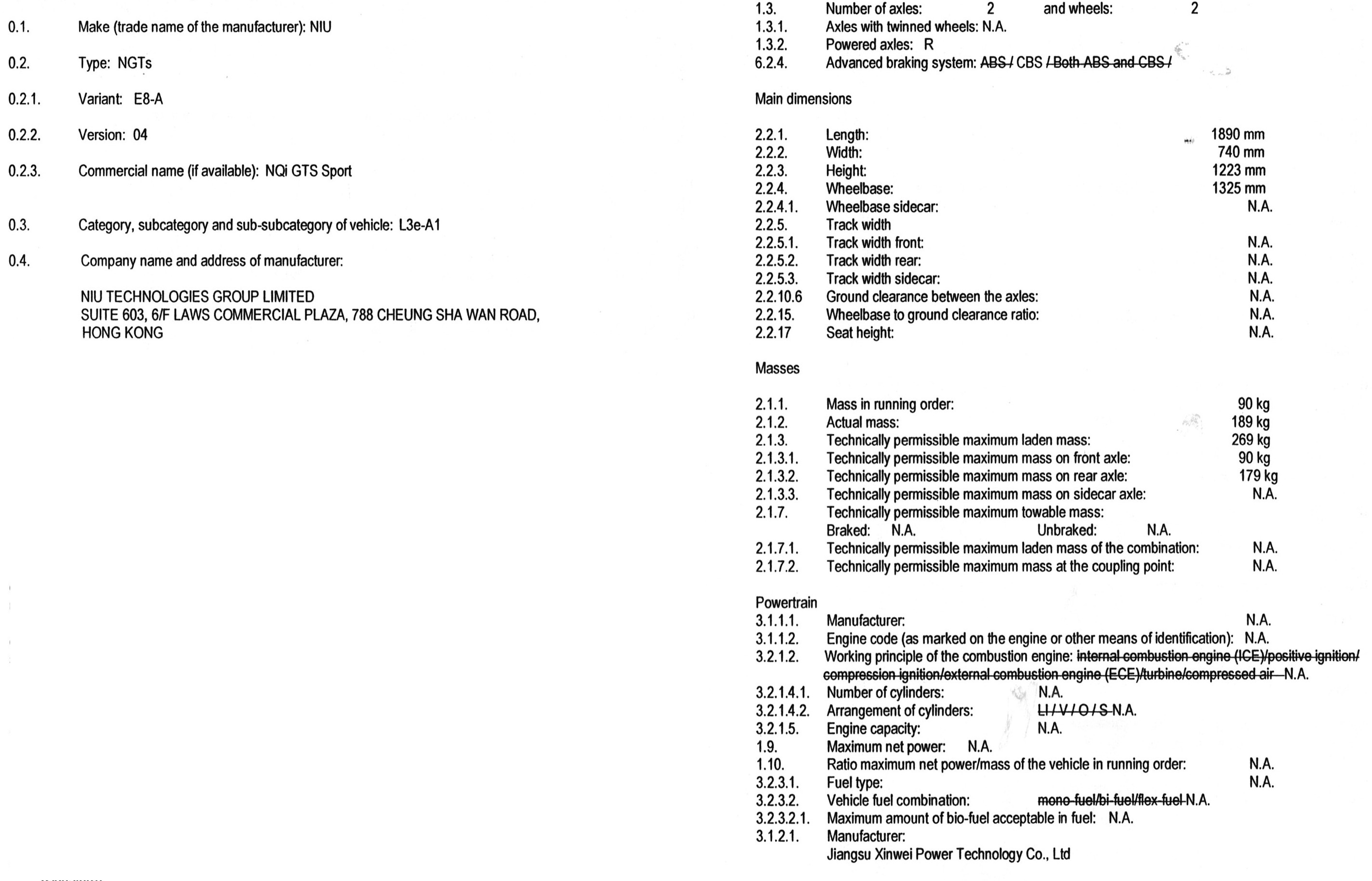 ich habe diese Woche meinen NIU NQiX 300 angemeldet und teile mal meine Daten mit: