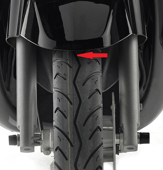 Sorry, ich habe den Pfeil missverständlich eingezeichnet. Das Rad läuft vorne mehr auf der linken Seite.