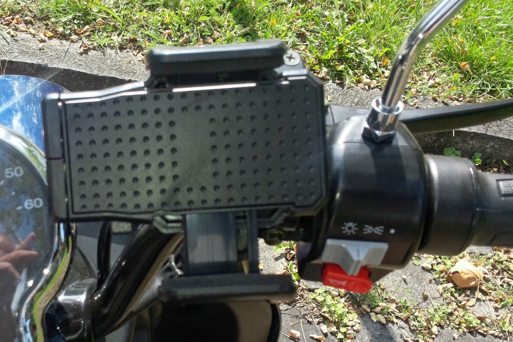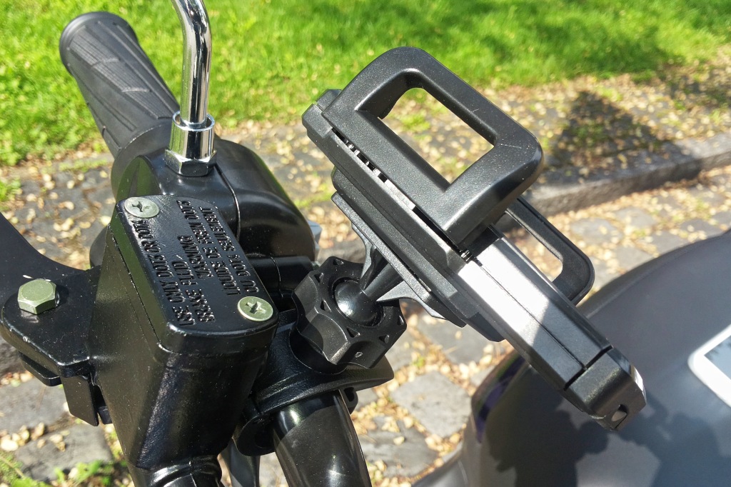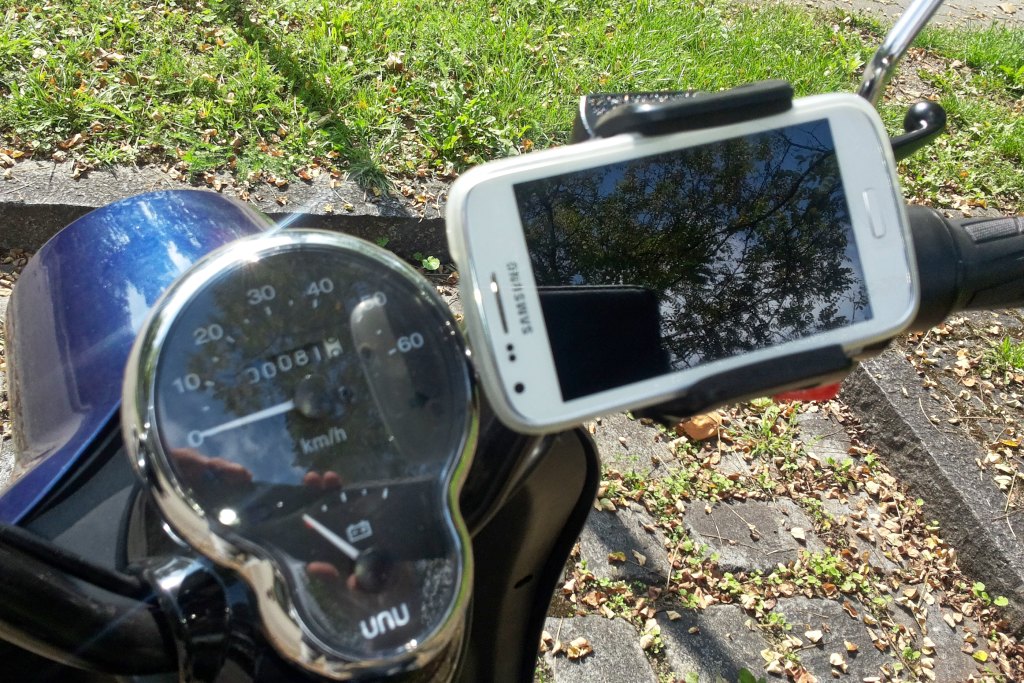 Anfangs hatte ich ein schwarzes Smartphone drauf. Da besteht die Gefahr, dass es nach dem Abstellen am Roller übersehen und vergessen wird. Deshalb verwende ich ein weißes.