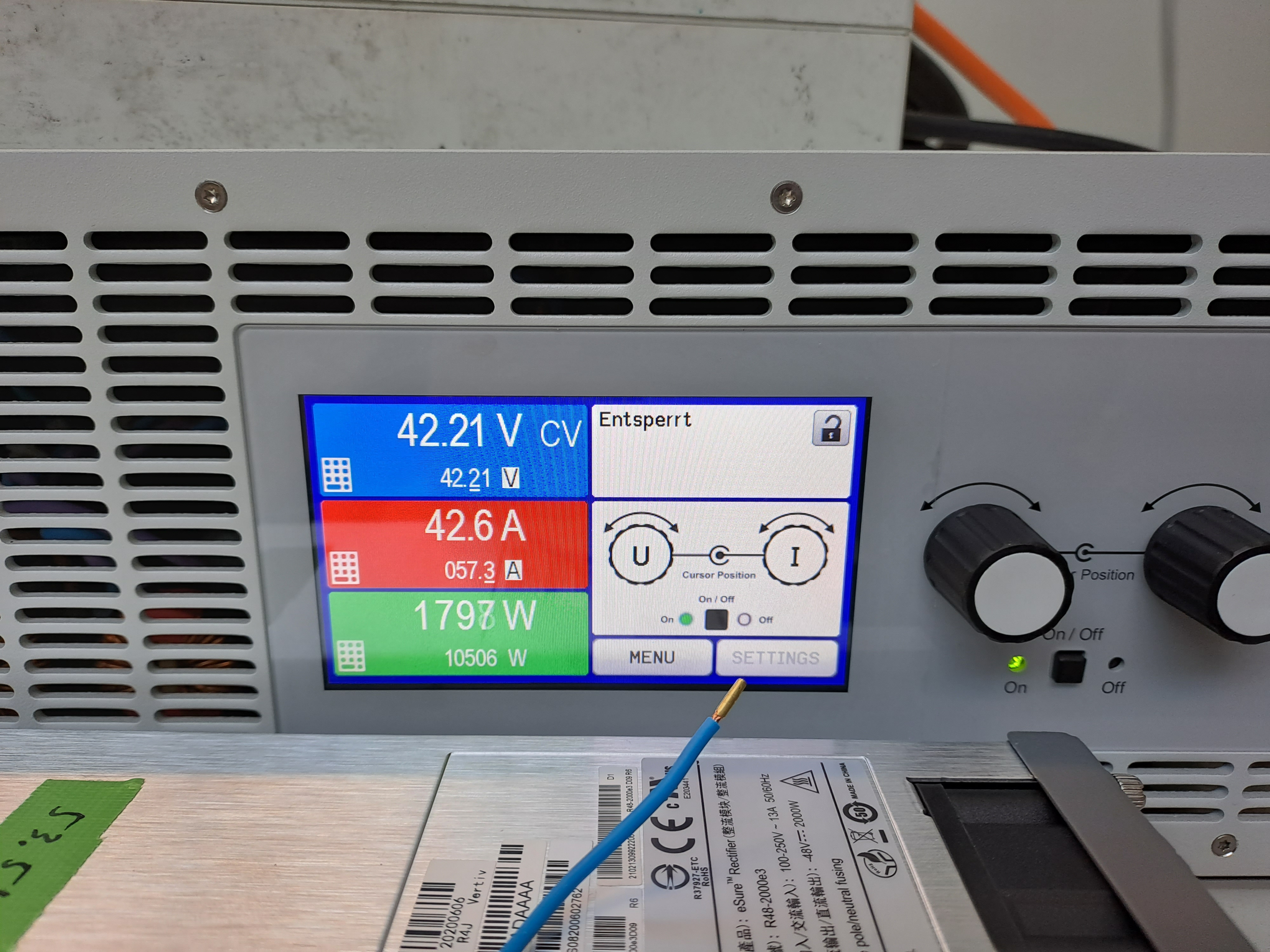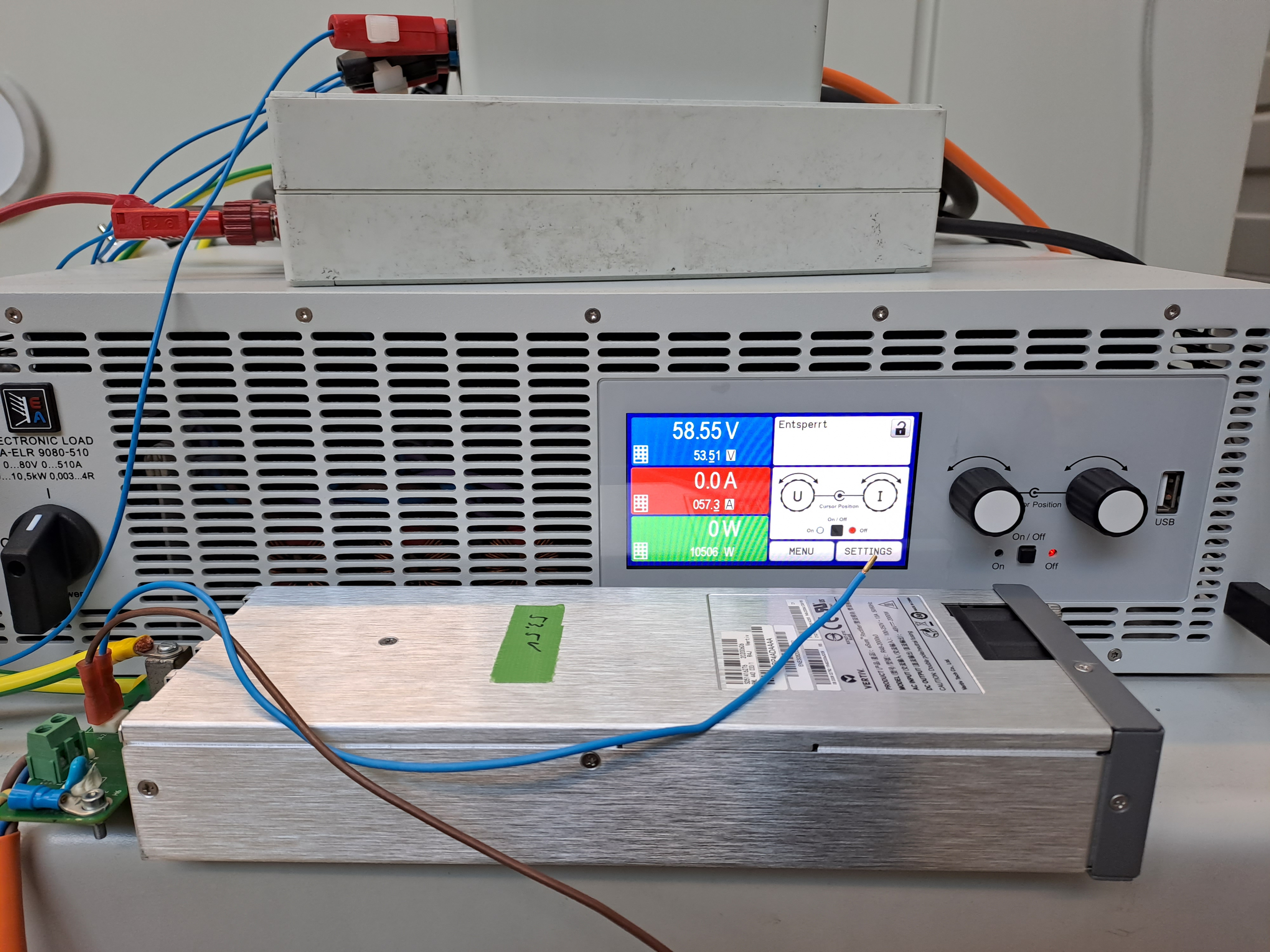 Ich kann jetzt das Vertiv 2kW Netzteil permanent in Ausgangsspannung und AC-Aufnahmestrom einstellen.