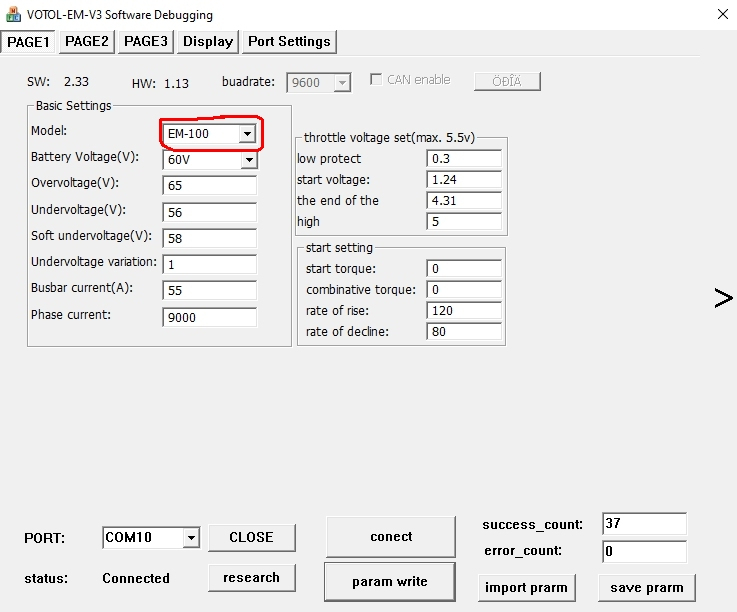 In der Software gibts aber nur den Votol EM50 - ohne S.