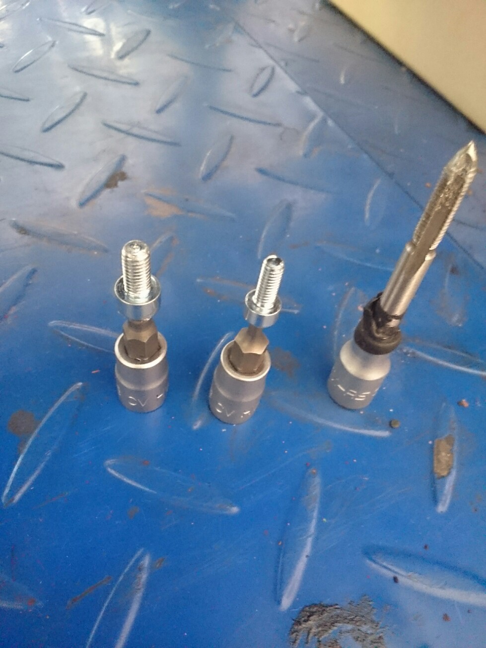 Plan B also M5er Gewinde schneiden und M5 Imbusschrauben.