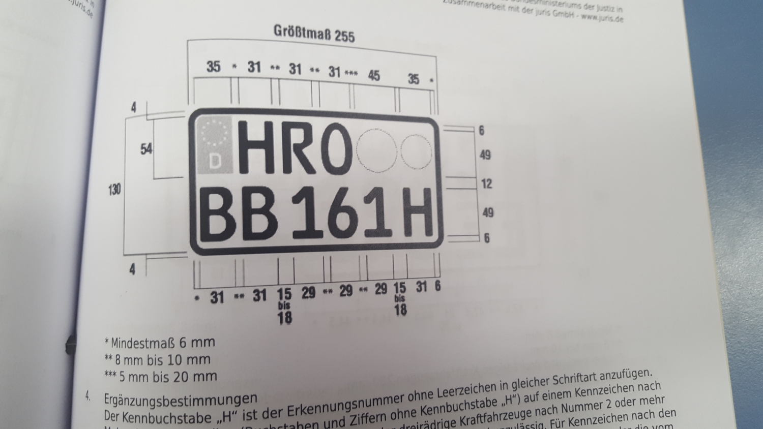 Wichtig ist nur und da wird kein Auge zugedrückt, das die Abstände zwischen Rand 6mm, Buchstaben 15mm, Zahlen 15mm,