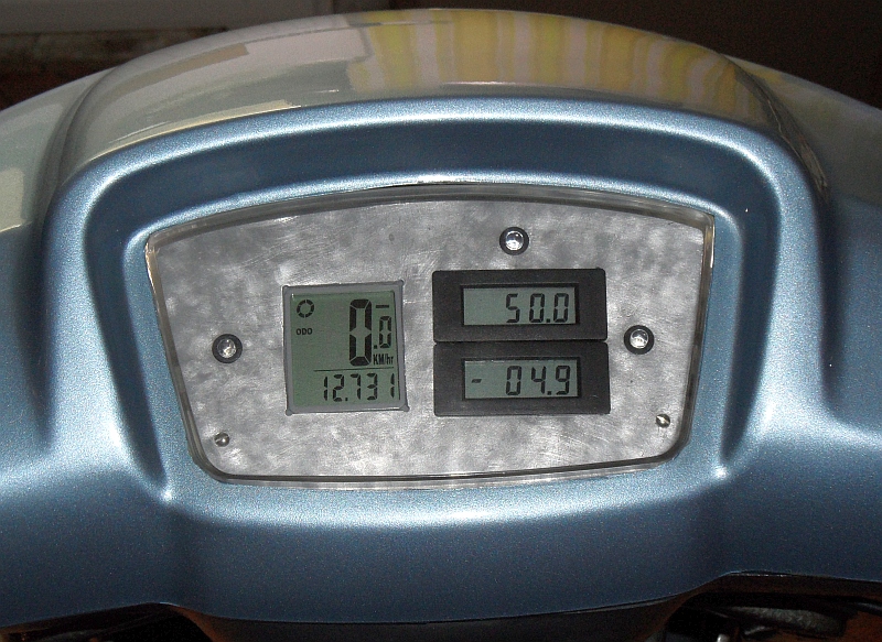 Ich will noch schnell meine Armaturen umbauen. Das Amp-Meter geht nur bis 50 und die Spannungsanzeige ist mir zu oberflächlich.