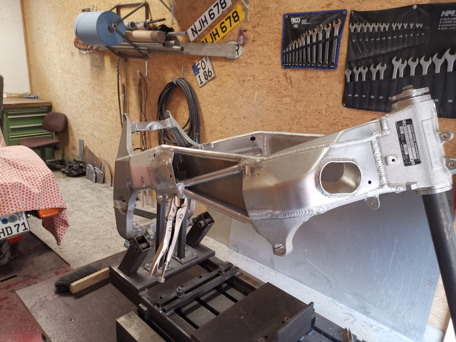 Der jetzige Motor ist nun fast 10cm größer im Durchmesser und das hatte zur Folge, das der Rahmen nun zu kurz war. Deshalb habe ich ihn um 25cm verlängert ...