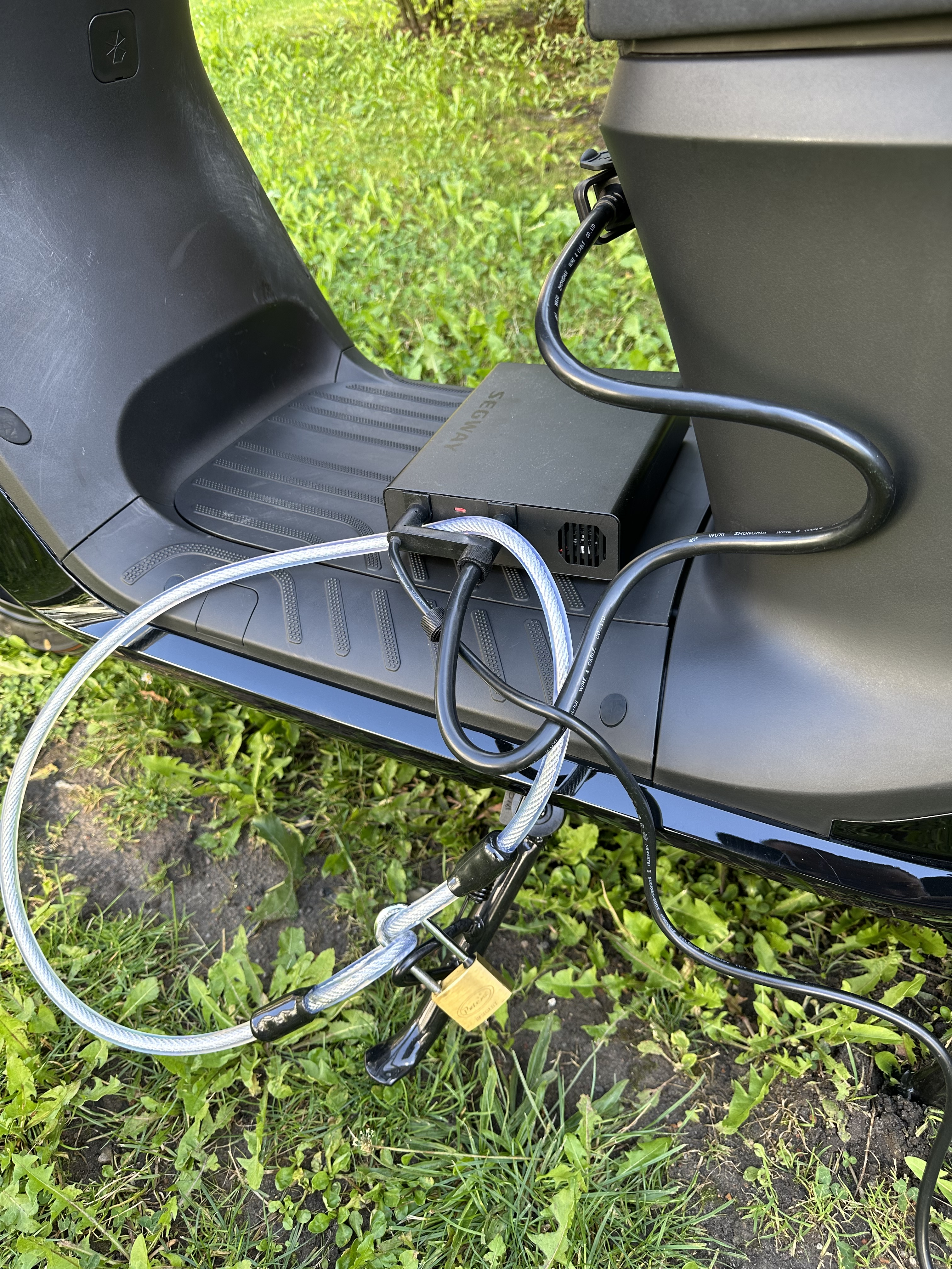 Ich möchte den Roller (nicht zu Hause) über den Ioniq 5 meiner Frau per V2L auf einem öffentlichen Parkplatz aufladen, habe nur Angst, dass mir dann jemand das Ladegerät klaut.