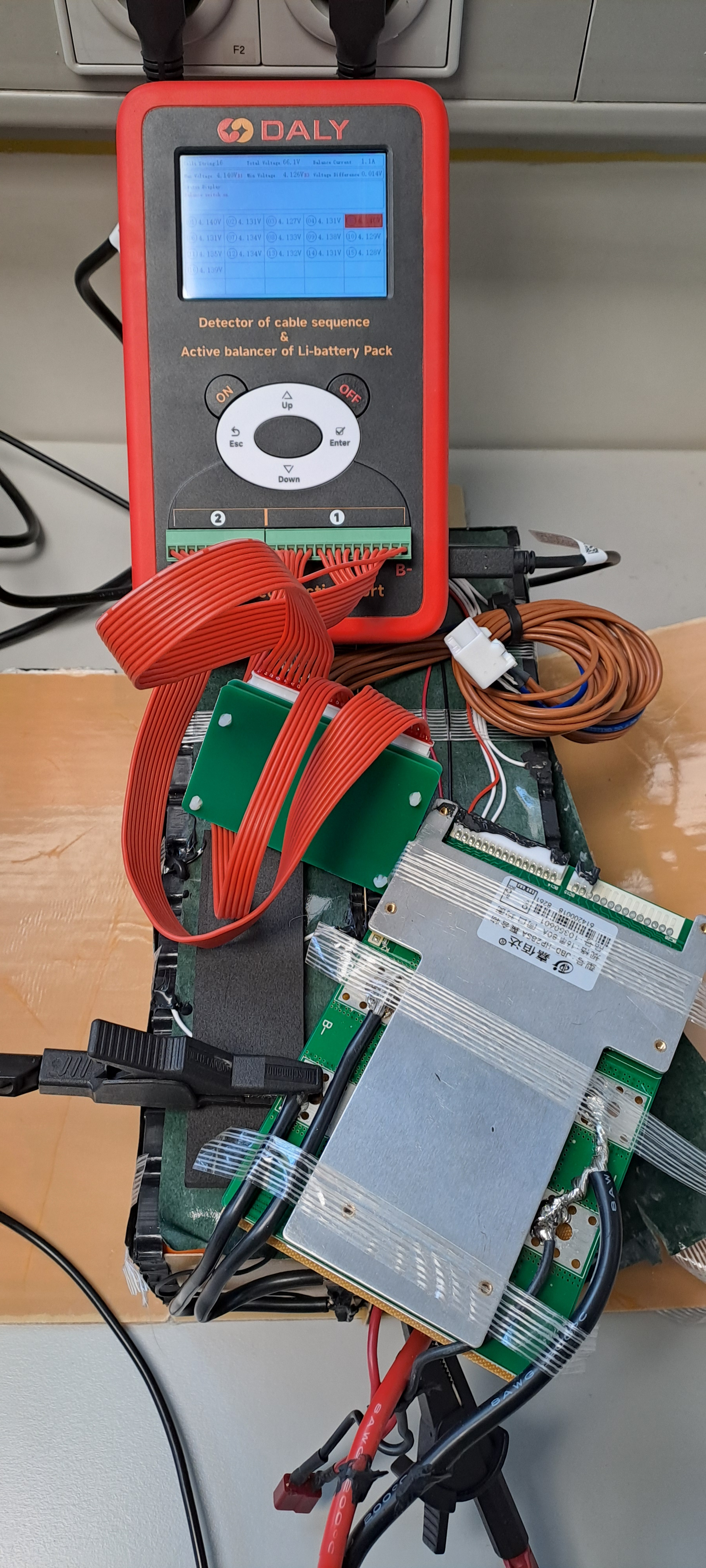 Jetzt wird gerade final geladen während ein externer aktiver Daly Balancer (einstellbar von 1-10A) sich ums balancieren kümmert, mit eingestellten 1A Balancerstrom sieht alles top aus. Das Teil von Daly ist echt klasse, auf das mitgelieferte Adapterboard passen die gängigen Balanceranschlüsse, somit ist das "plug and play".