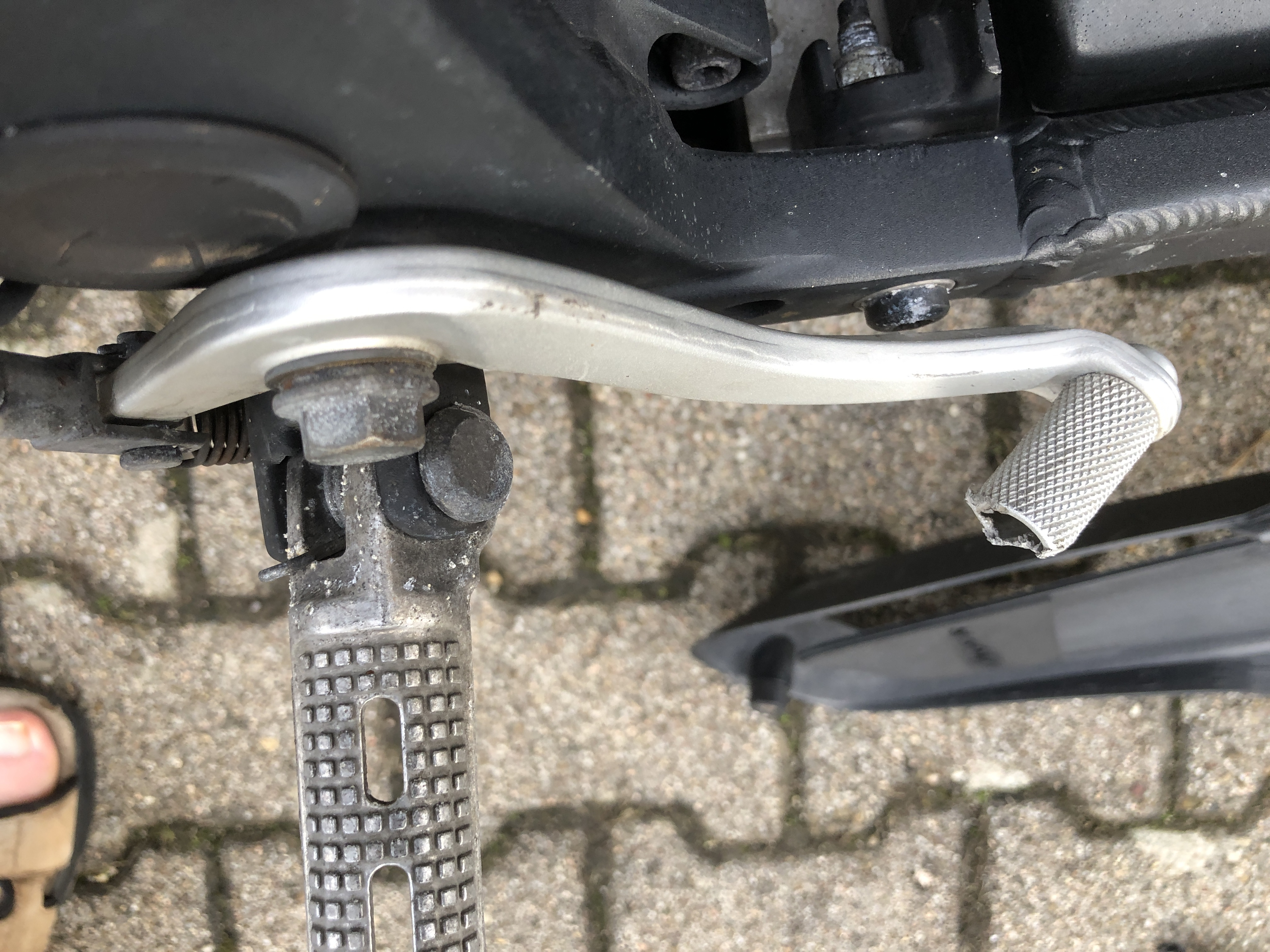 Der umgebogene Fußbremshebel: .