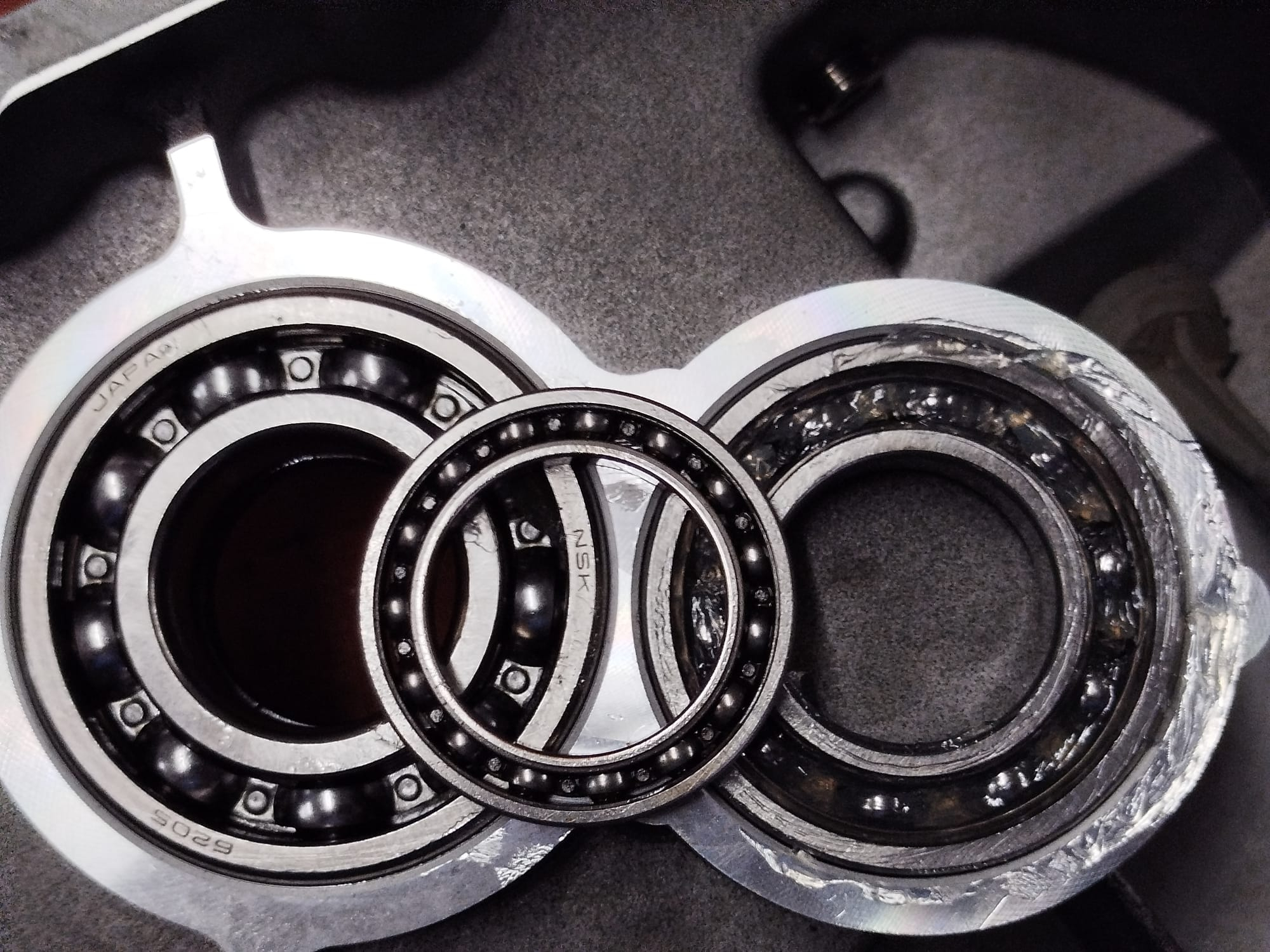 Es wurden wohl die drei kleinen (6805 D25xD37x7) Lager gegen Größere (6005) ersetz.